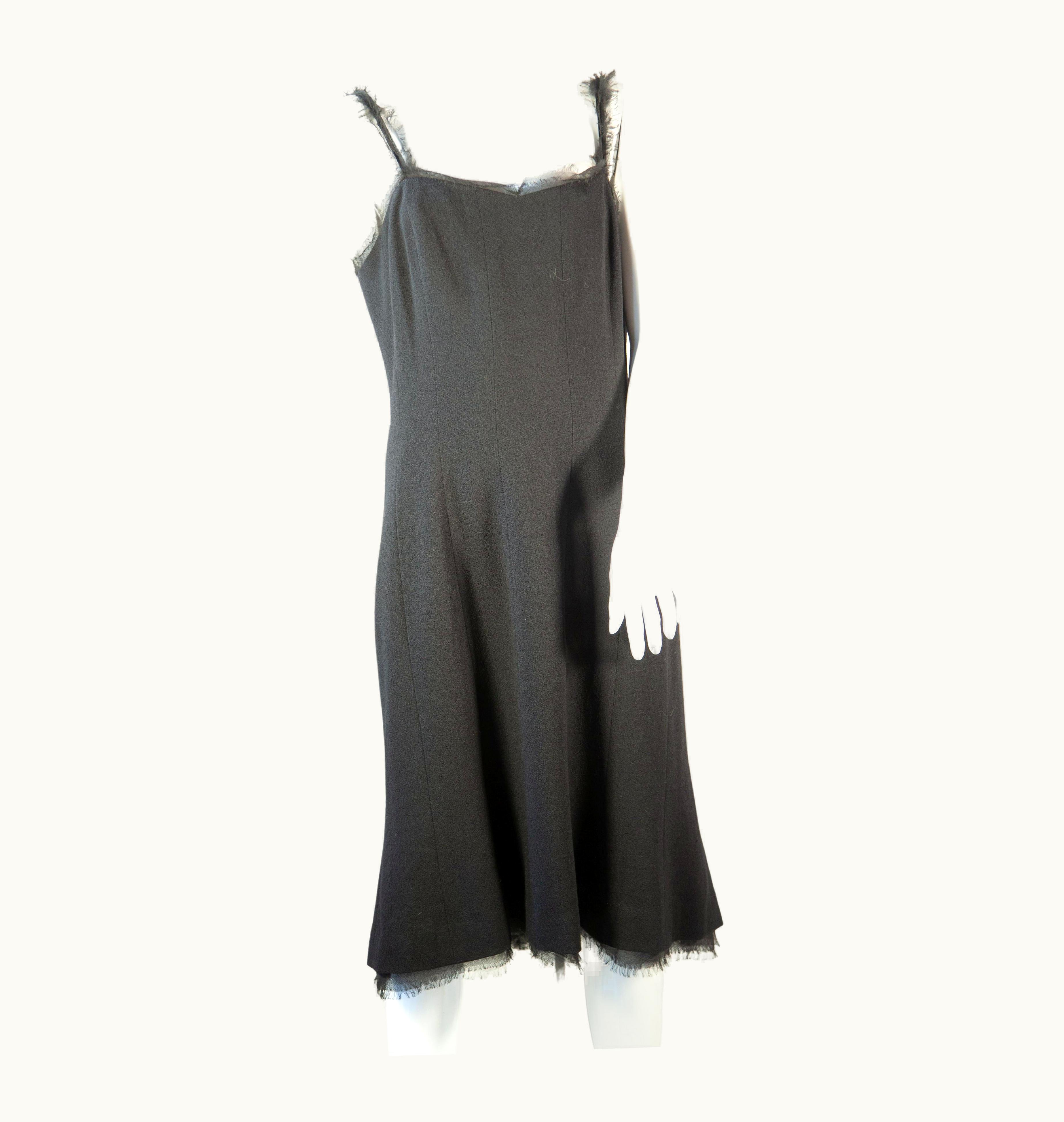 Chanel Chiffon Fringe Trim Black Cocktail Dress | GLINT