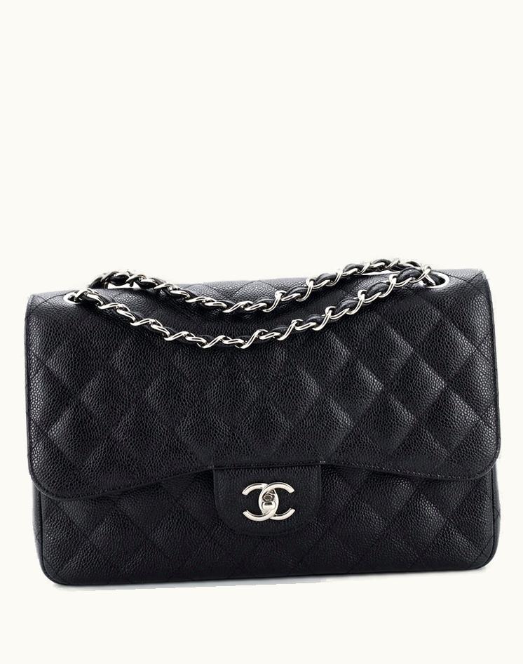 Chanel Classic Double Flap Bag Quilted Caviar Jumbo Black Silver | GLINT