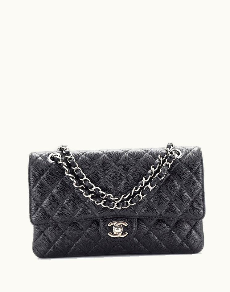 Chanel Classic Double Flap Bag Quilted Caviar Medium Black/Red | GLINT
