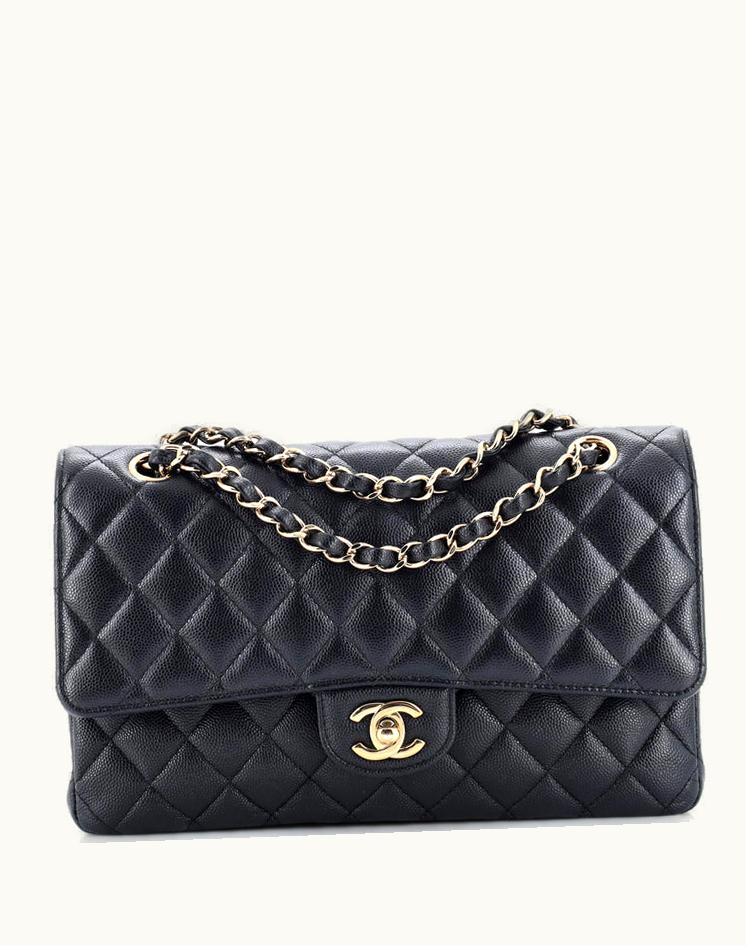 Chanel Classic Double Flap Bag Quilted Caviar Medium Blue Leather Gold-Tone | GLINT