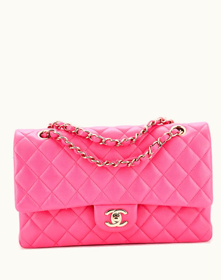 Chanel Classic Double Flap Bag Quilted Caviar Medium Pink | GLINT