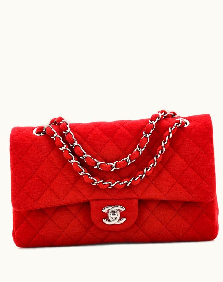 Chanel Classic Double Flap Bag Quilted Jersey Medium Red Silver | GLINT