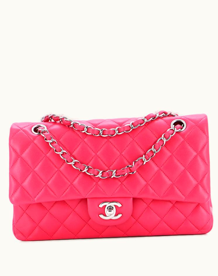 Chanel Classic Double Flap Bag Quilted Lambskin Medium Pink | GLINT