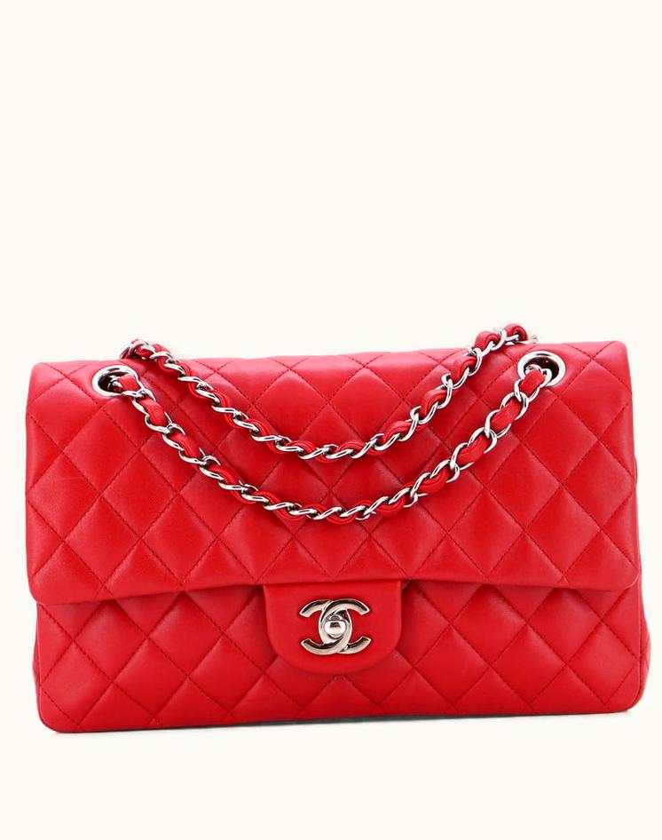 Chanel Classic Double Flap Bag Quilted Lambskin Medium Red | GLINT