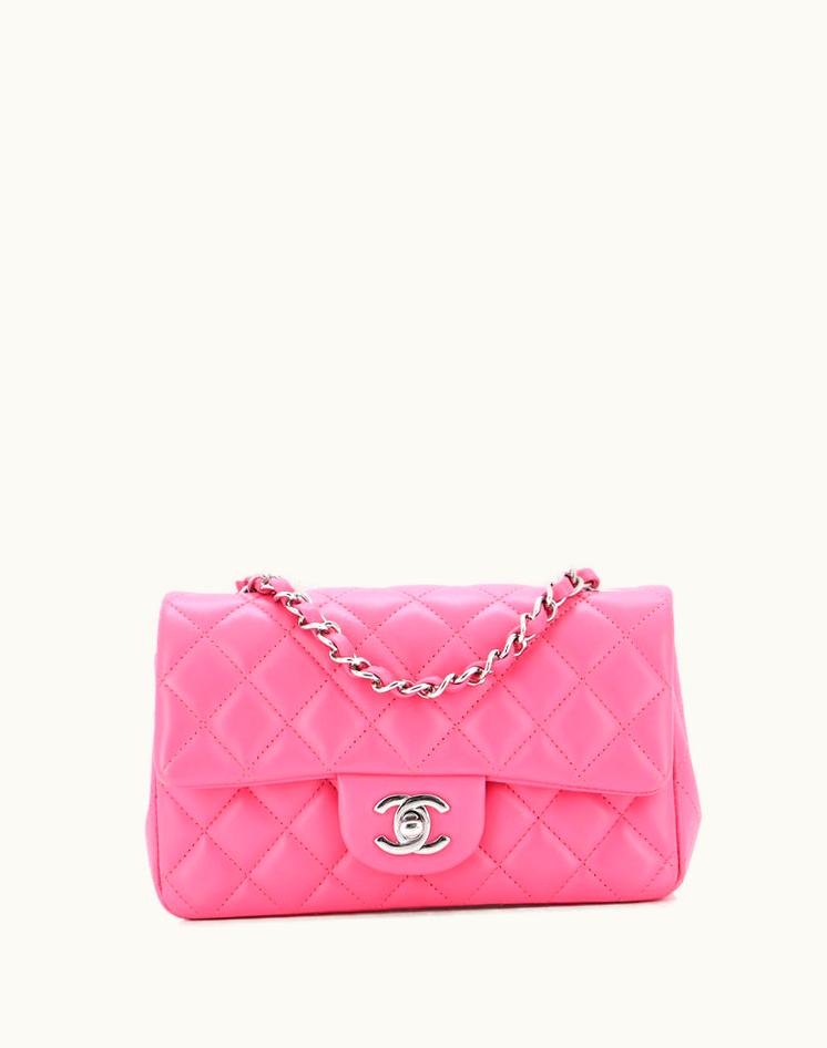 Chanel Classic Single Flap Bag Quilted Lambskin Mini Pink Silver | GLINT