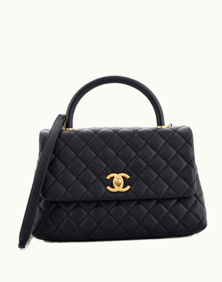 Chanel Coco Top Handle Bag Quilted Caviar Small in Black | GLINT