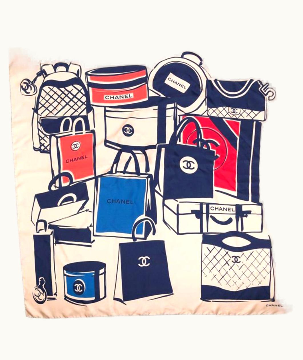 Chanel Cream Luggage Print Silk Scarf | GLINT
