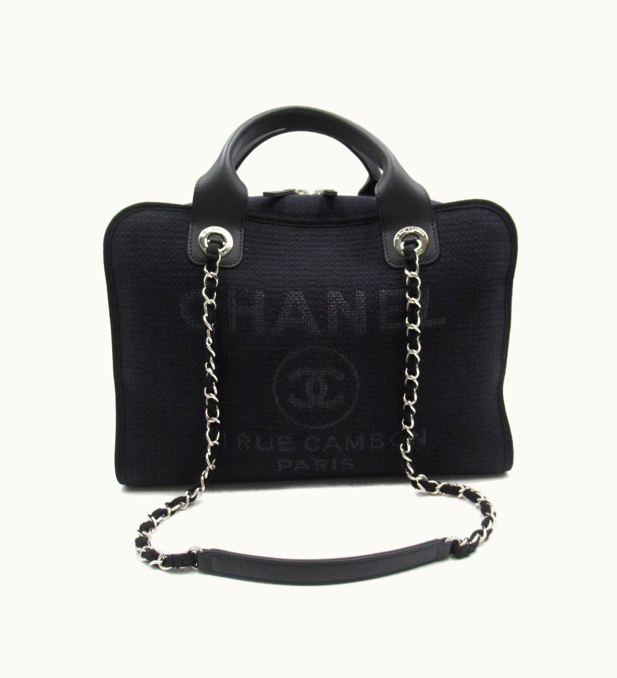 Chanel Deauville 2Way Boston Black Canvas Leather | GLINT