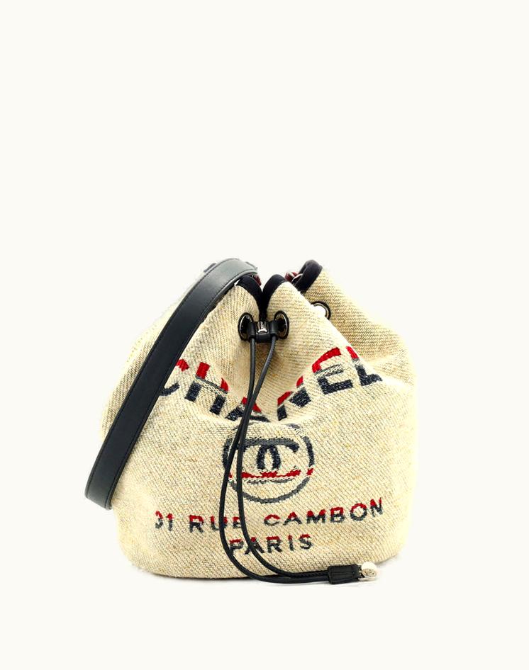Chanel Deauville Drawstring Bucket Bag Lurex Canvas Medium | GLINT