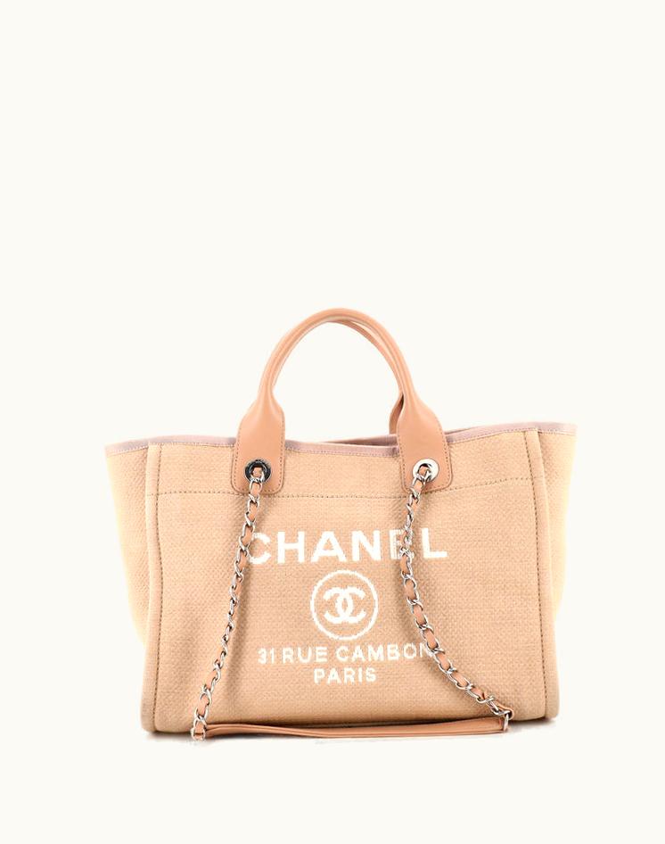 Chanel Deauville NM Tote Mixed Fibers Small Plain Canvas Silver | GLINT