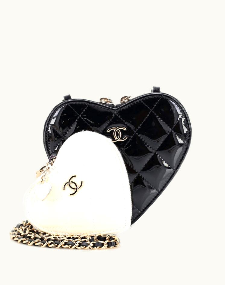 Chanel Double Heart Clutch With Chain Quilted Patent | GLINT