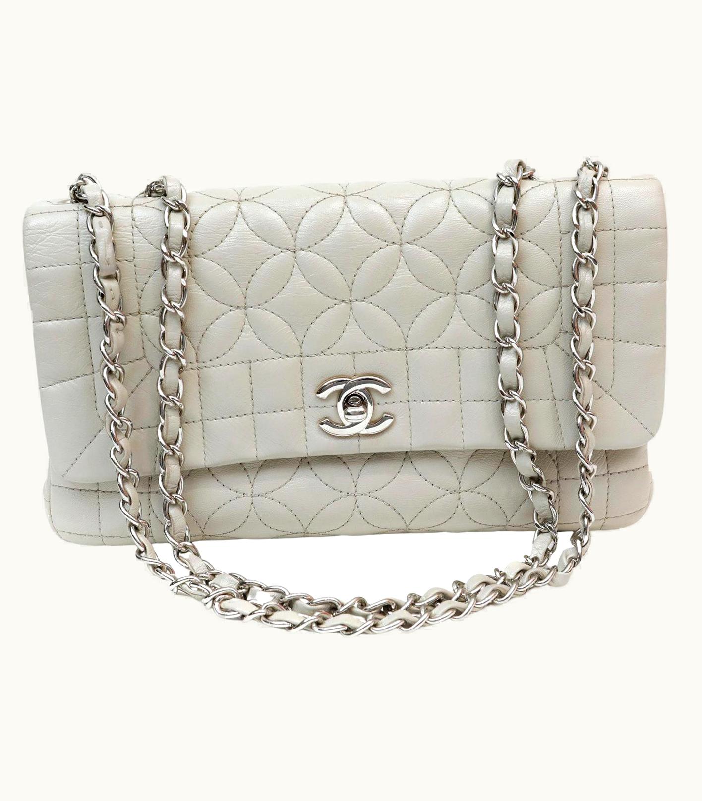Chanel Etoupe Leather Camellia Flap Bag | GLINT