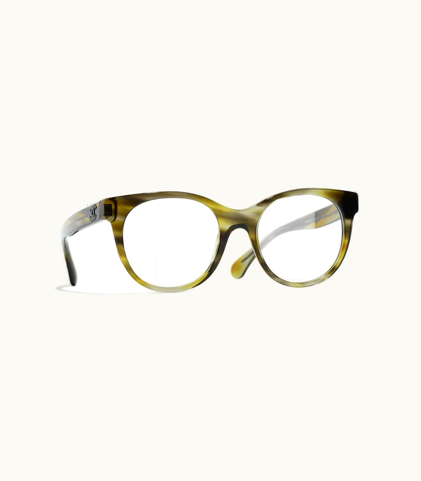 Chanel Eyeglasses: Cat Eye Eyeglasses, Acetate Green Tortoise | GLINT