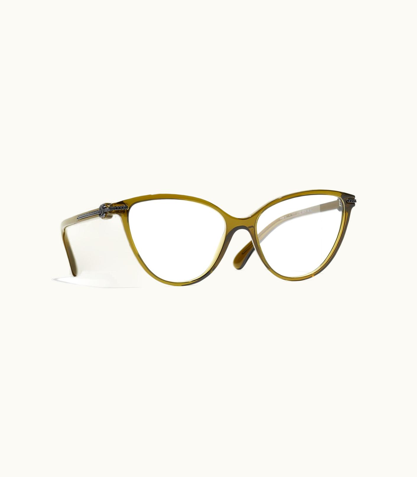 Chanel Eyeglasses: Cat Eye Eyeglasses, Acetate Olive | GLINT