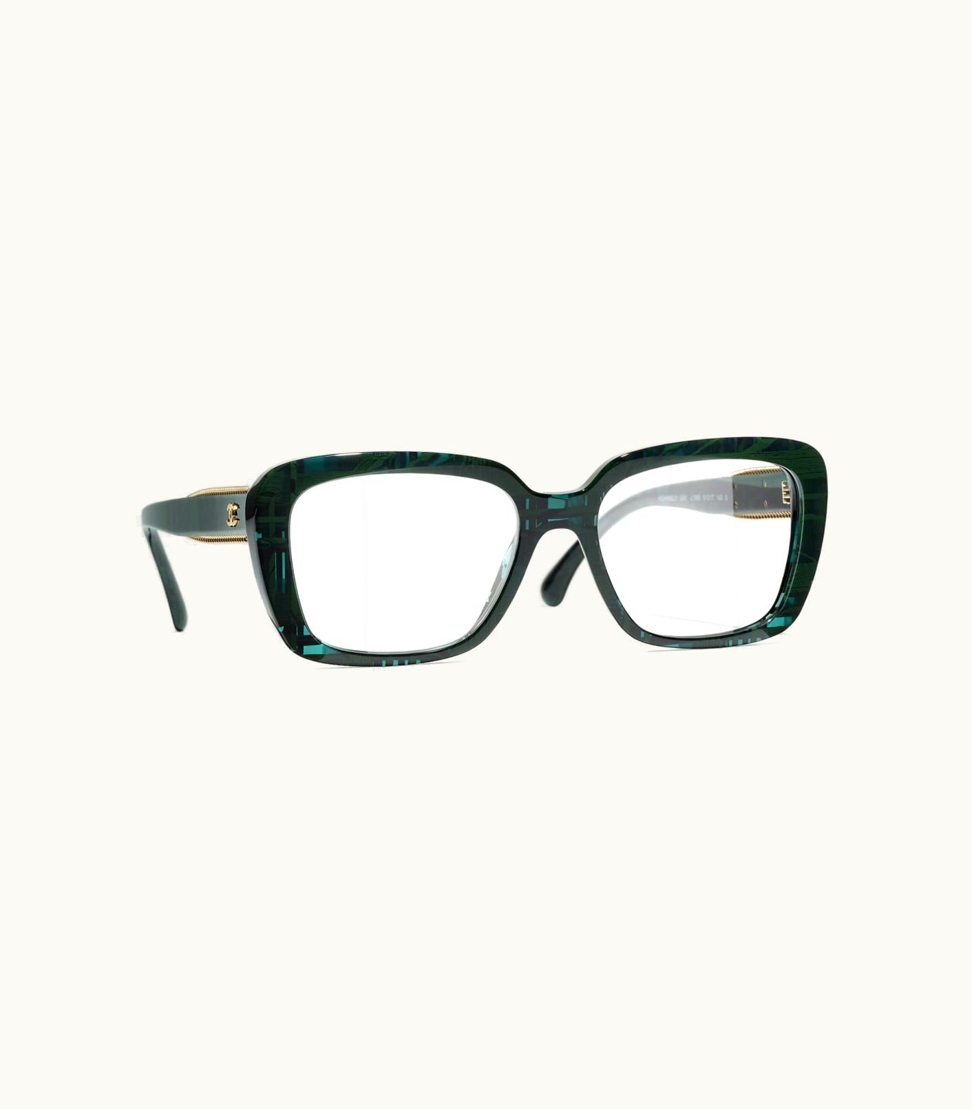 Chanel Eyeglasses: Square Eyeglasses, Acetate Dark Green | GLINT