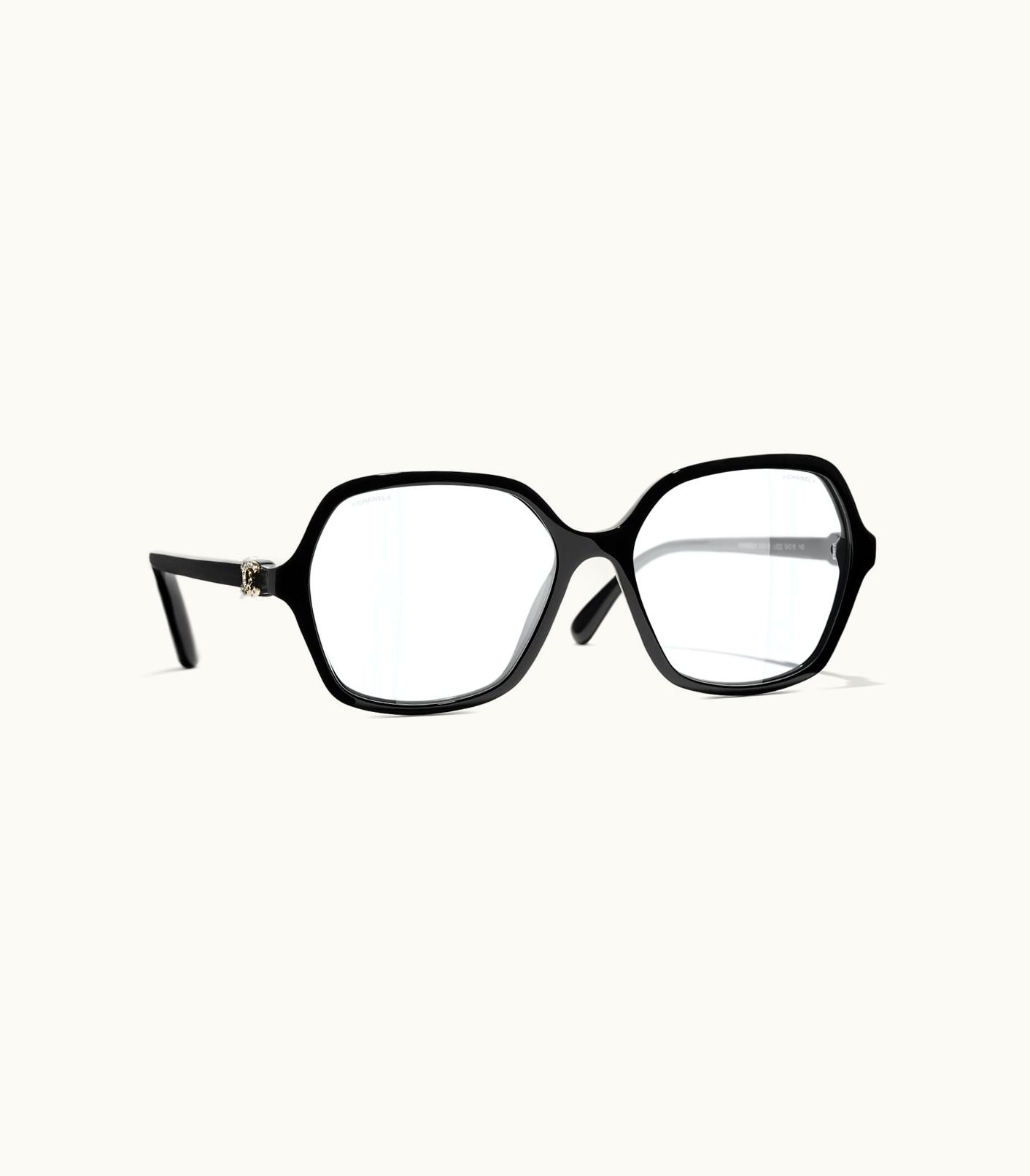 Chanel Eyewear: Butterfly Blue Light Glasses, Acetate Black | GLINT