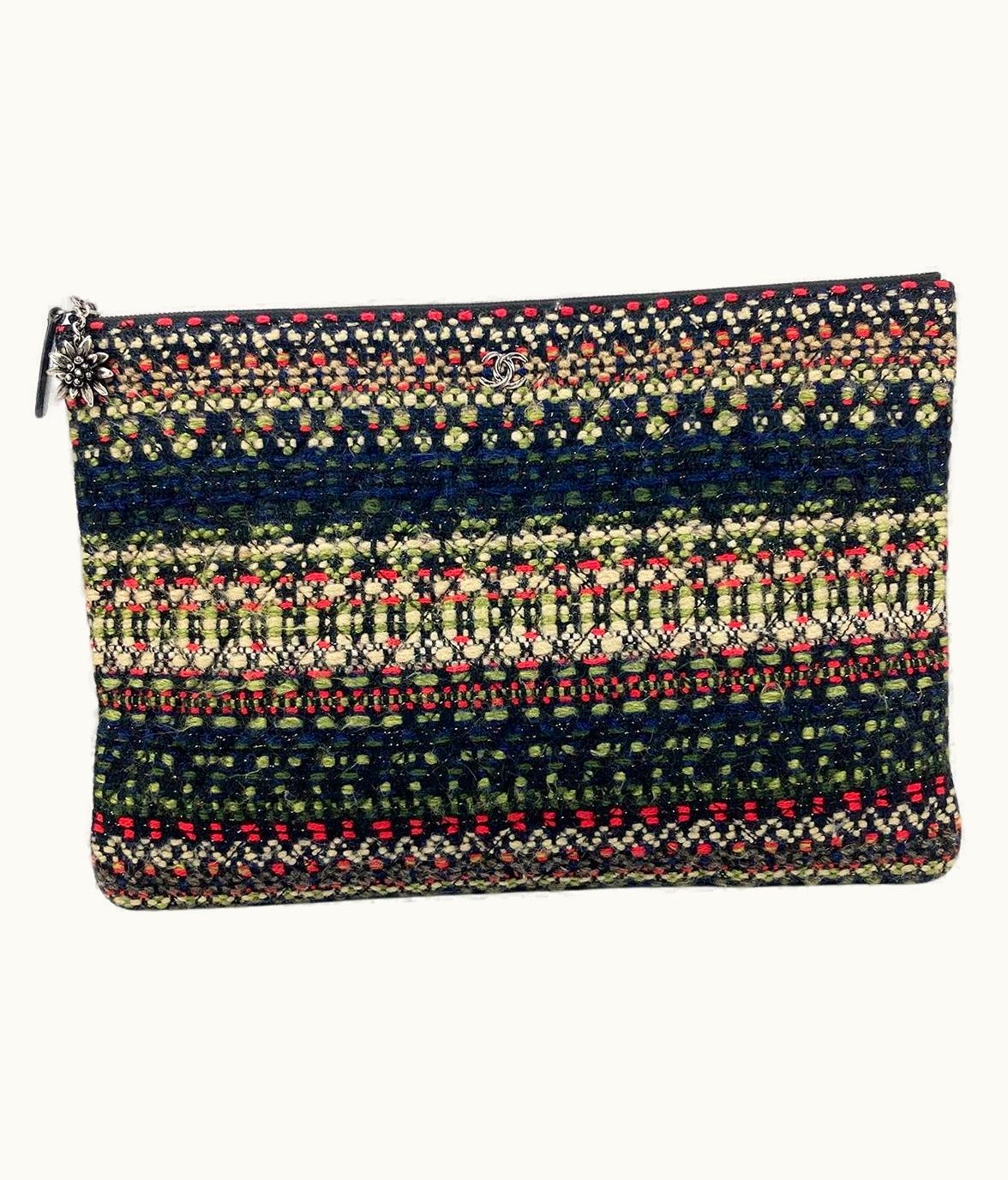 Chanel Floral Charm Tweed and Wool Zipped Pouch Black Multi | GLINT