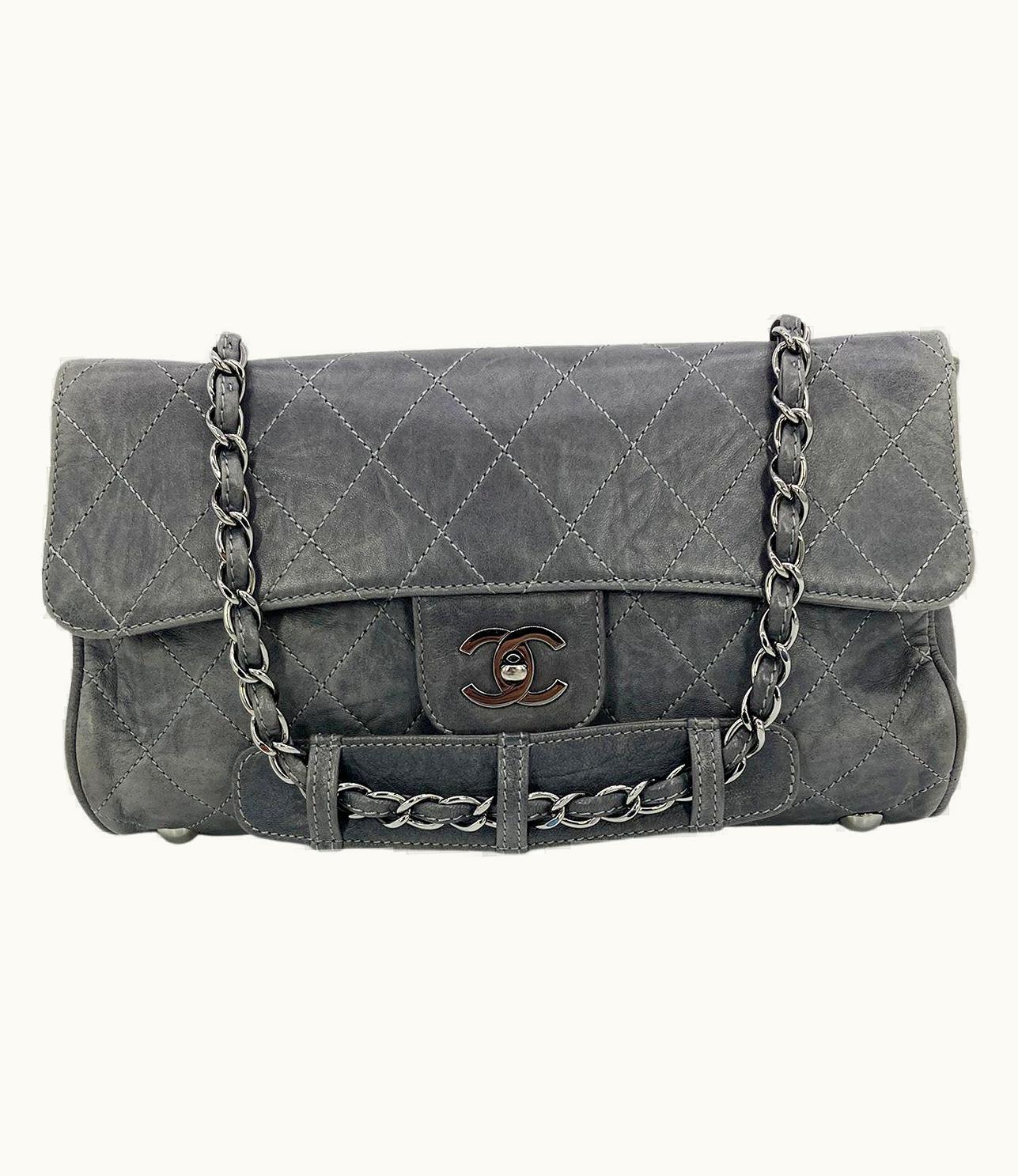 Chanel Gray Distressed Leather Quilted Classic Flap | GLINT