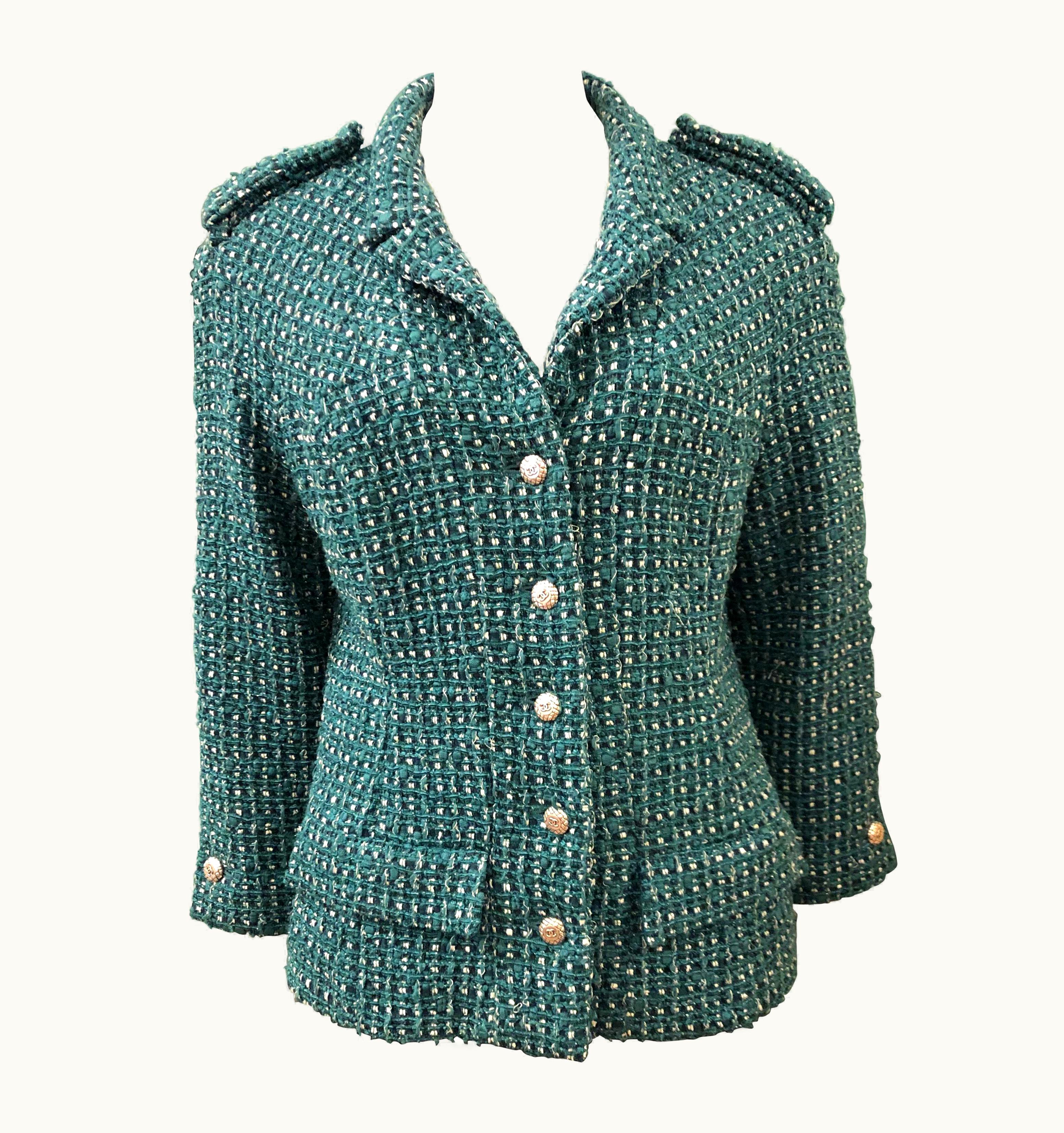 Chanel Green Tweed 3/4 Length Sleeves Jacket | GLINT