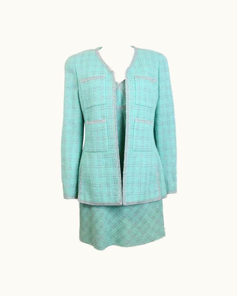 Chanel Green Tweed Dress Suit Ensemble | GLINT