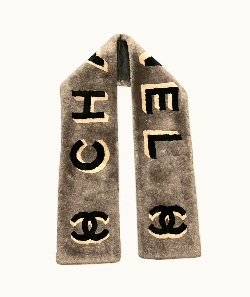 Chanel Grey Multicoloured Cachemire Sheepskin Scarf | GLINT