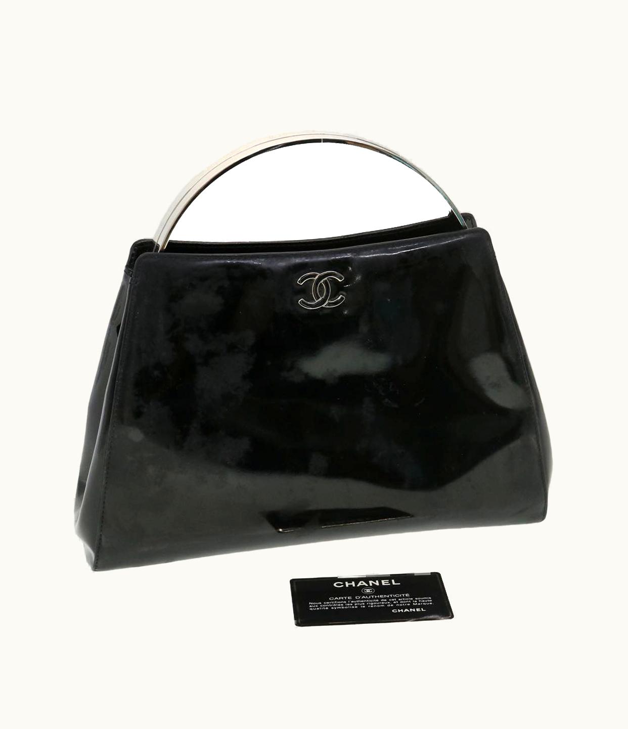 Chanel Hand Bag Enamel Black CC | GLINT