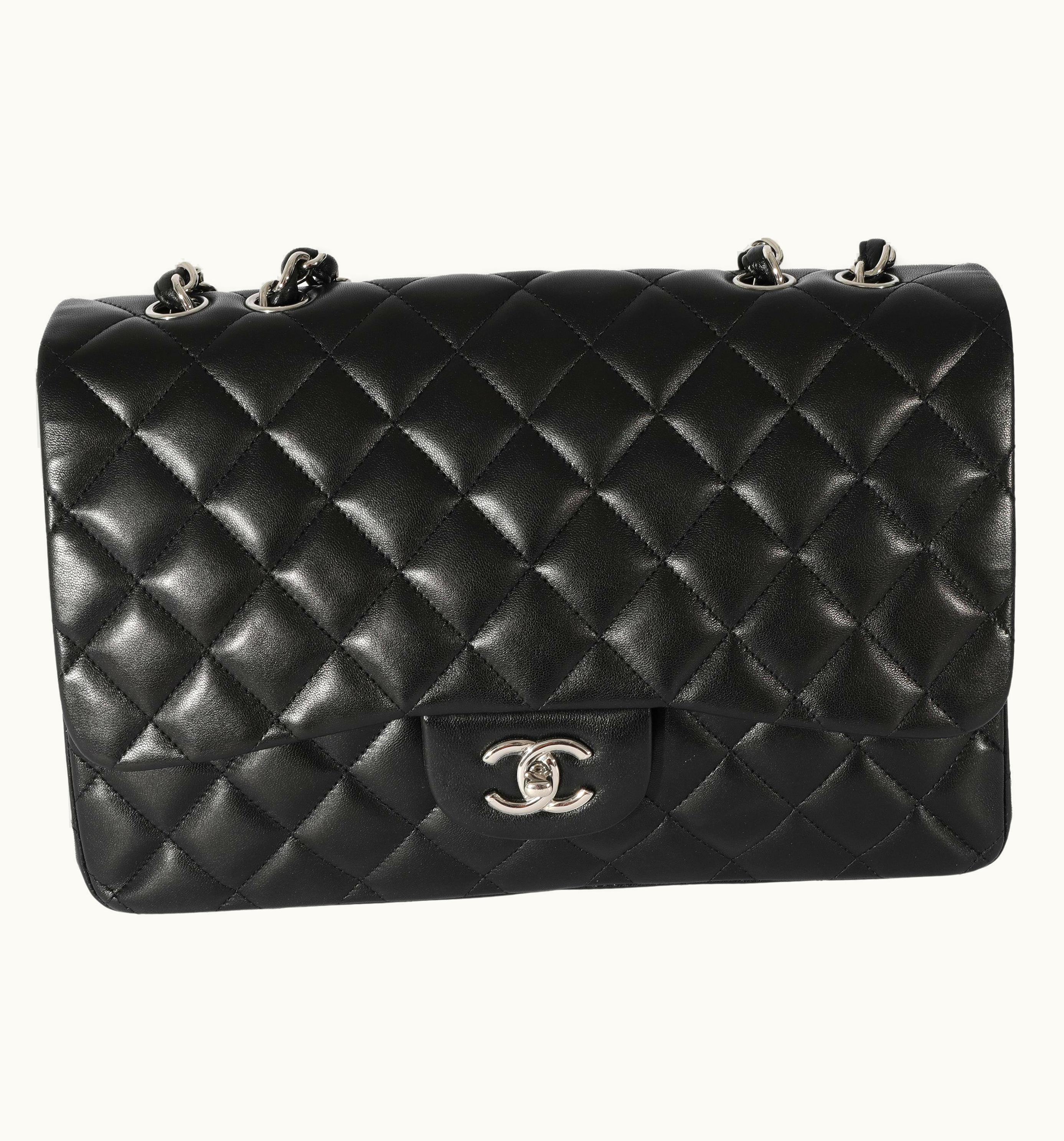 Chanel Jumbo Single Flap Bag in Black Lambskin | GLINT