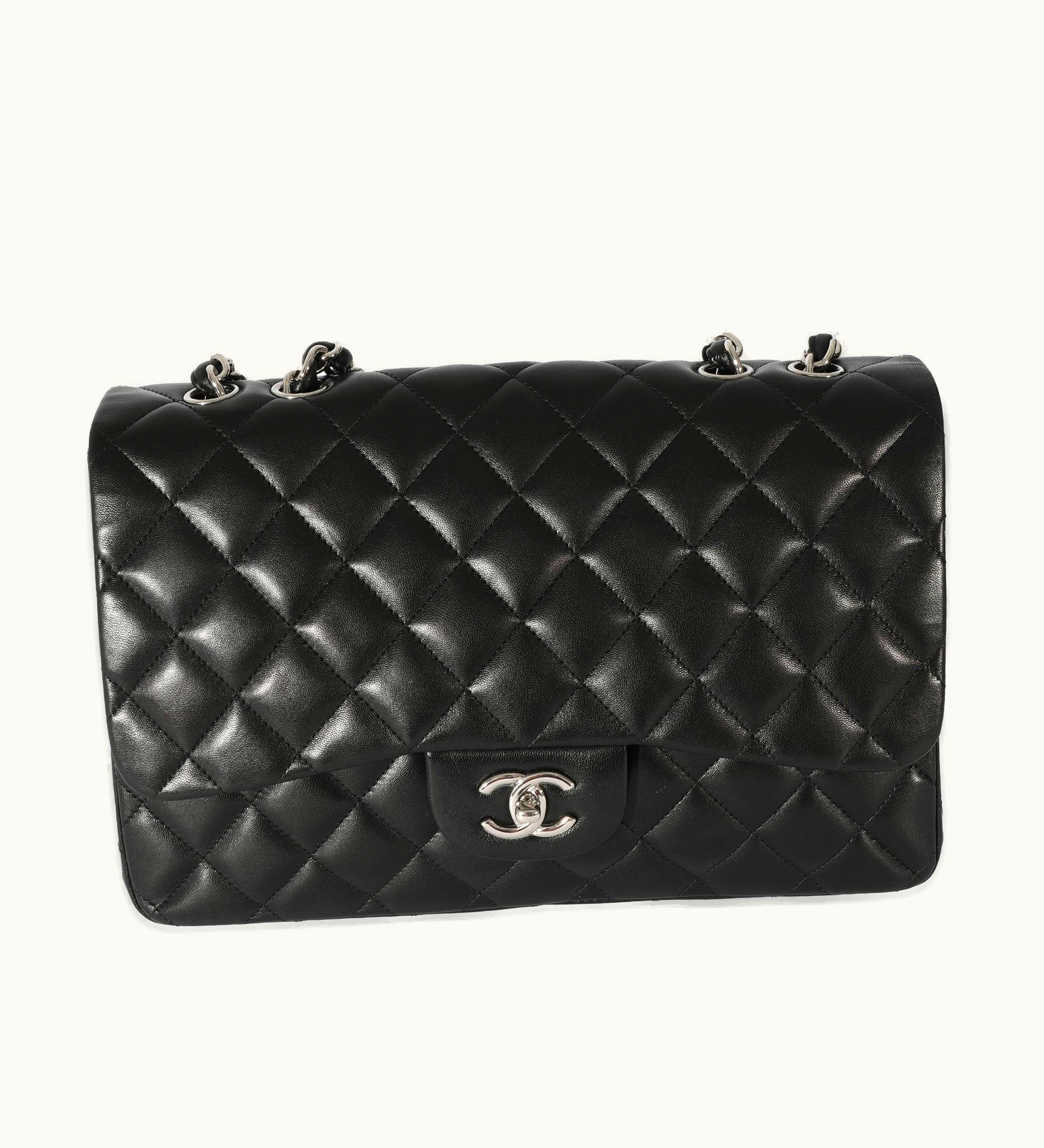 Chanel Jumbo Single Flap Shoulder Bag Black Lambskin | GLINT