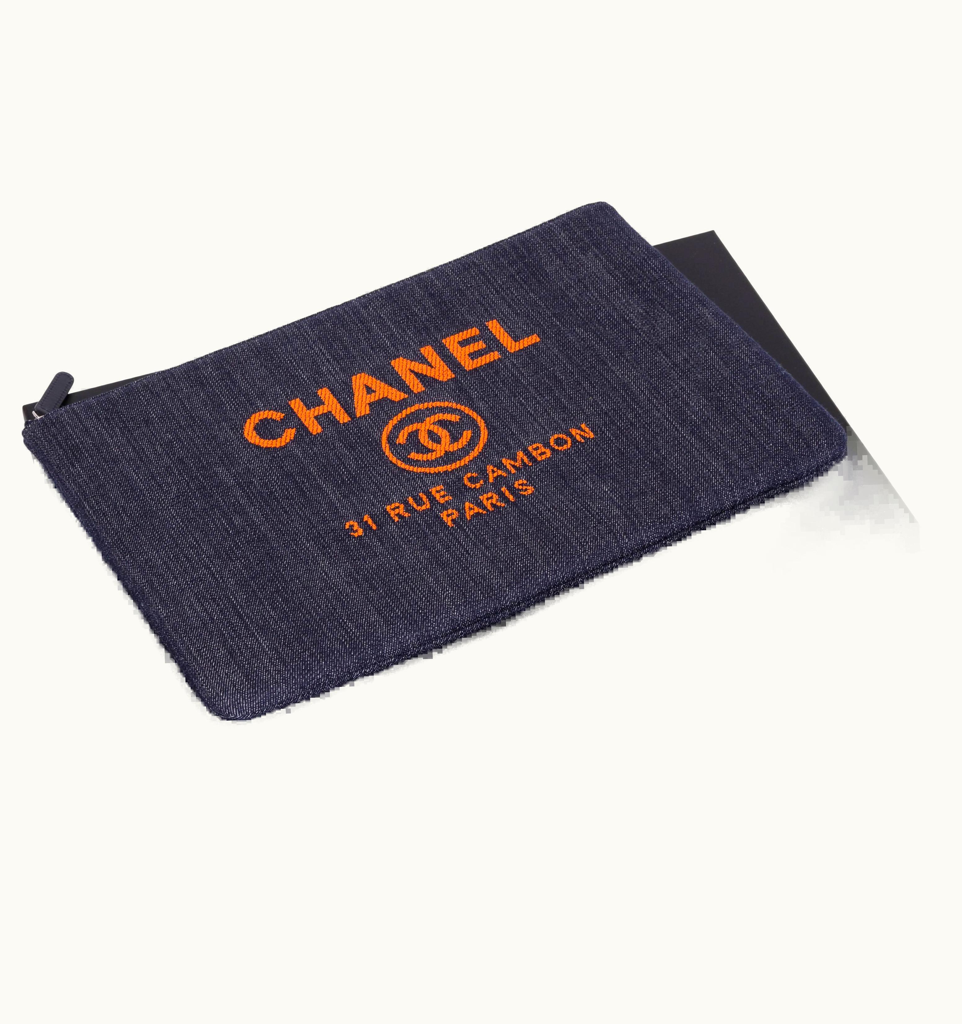Chanel Large Denim/Orange Clutch | GLINT
