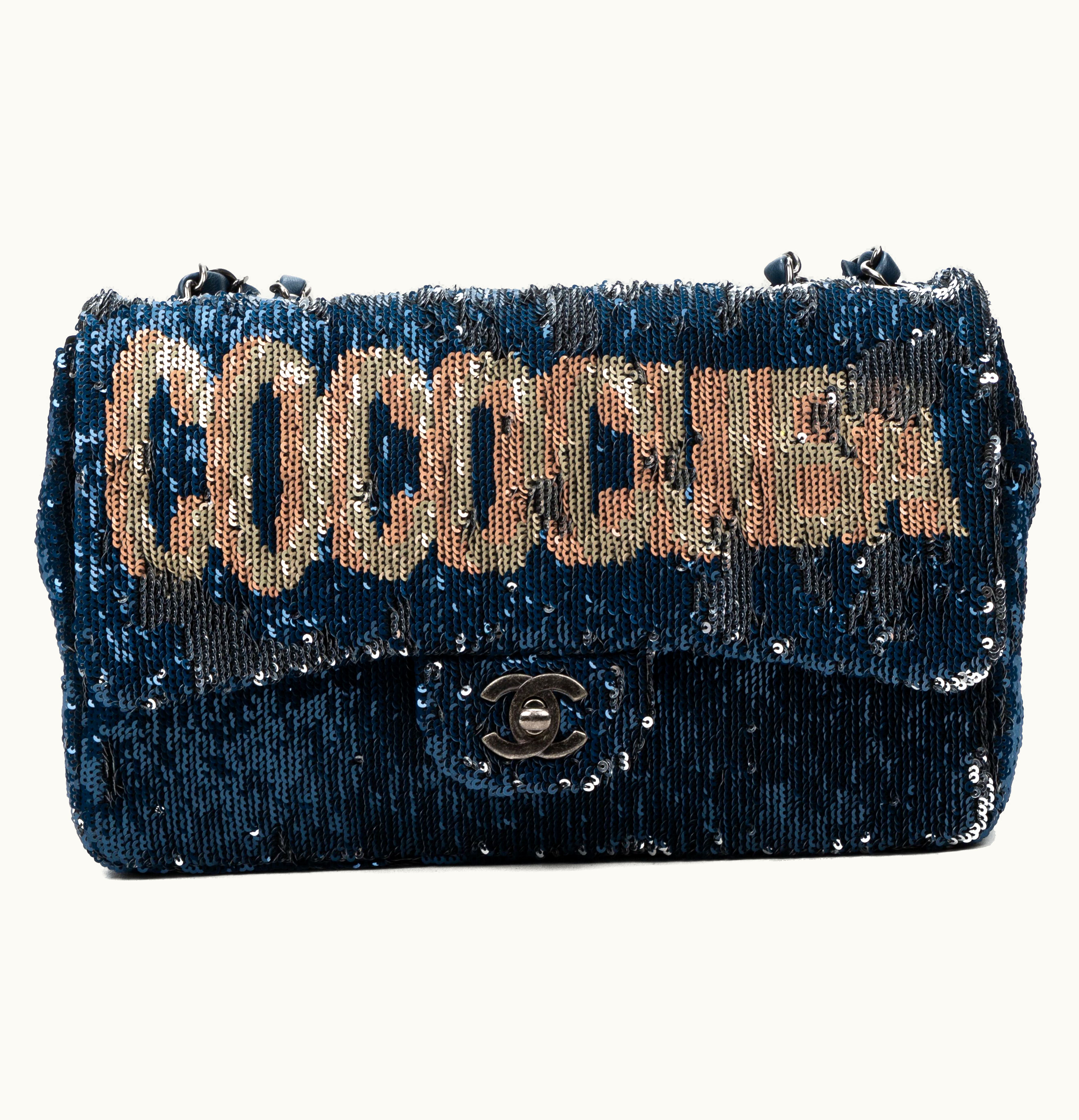 Chanel Limited Edition Coco Cuba Timeless CC Double Flap Sequins Navy Blue | GLINT