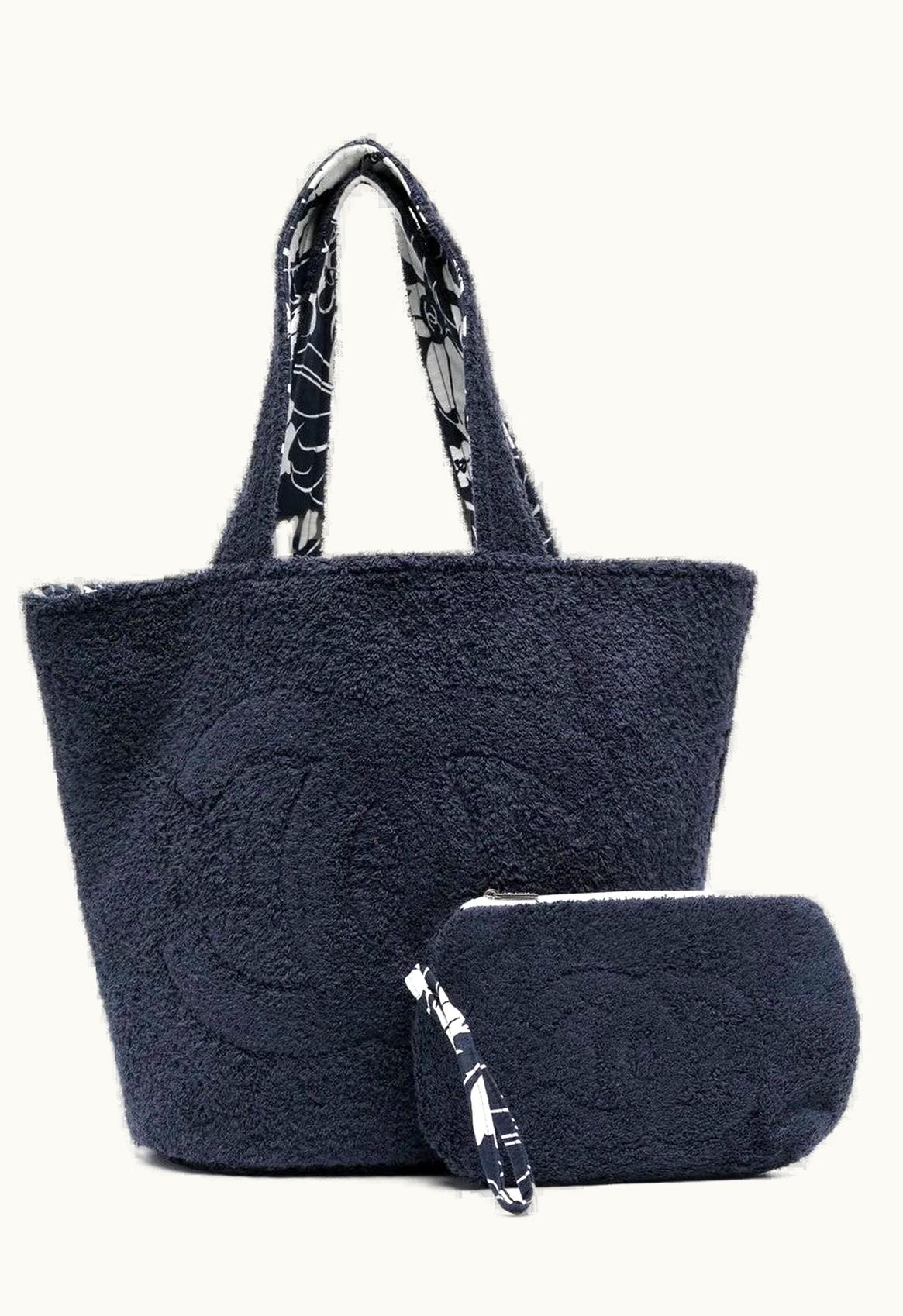 Chanel Logo Stitch Beach Tote Set - Dark Blue Terry Cloth Luxe Collection | GLINT