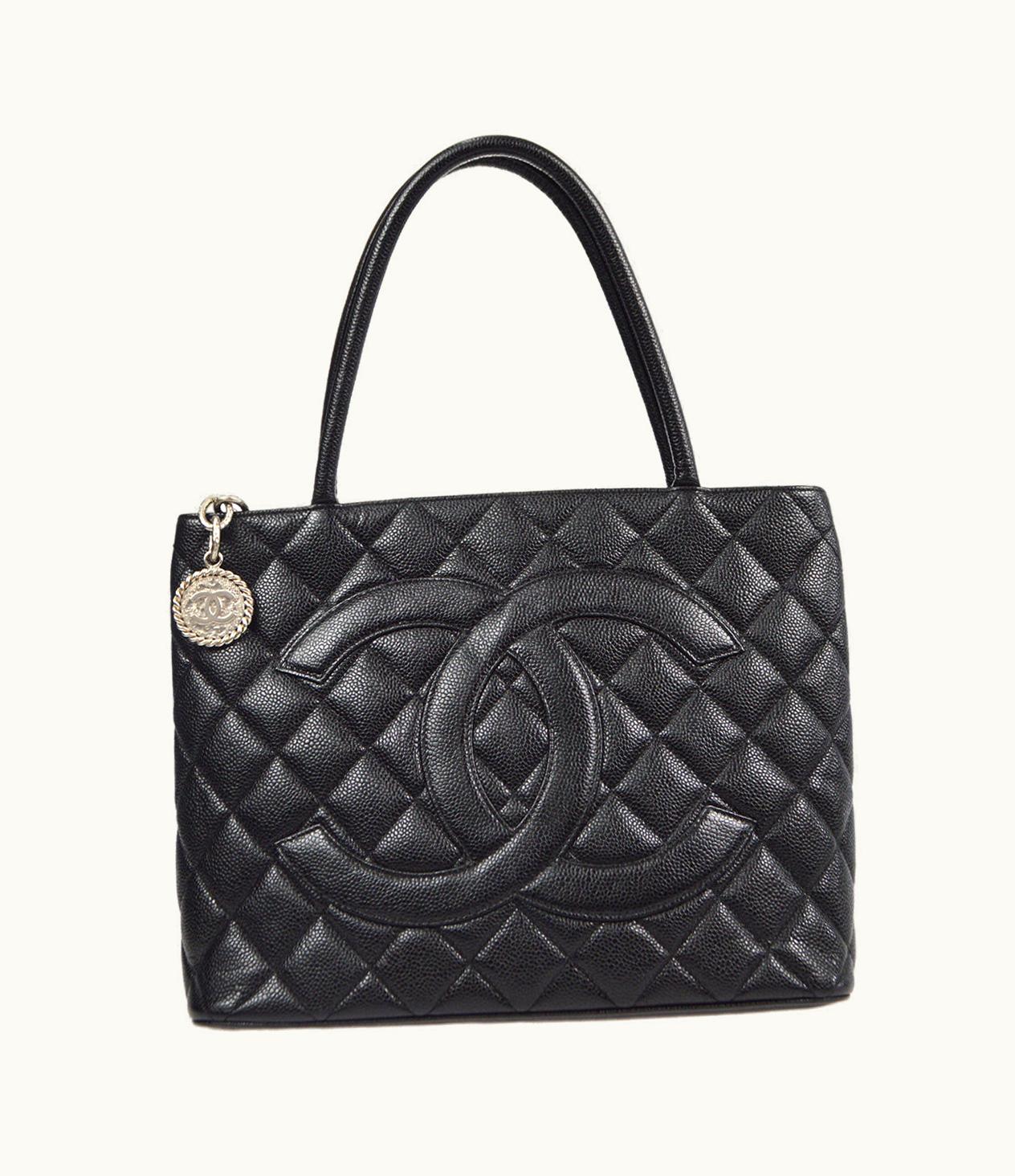 Chanel Medallion Tote Handbag Black Caviar 67860 | GLINT