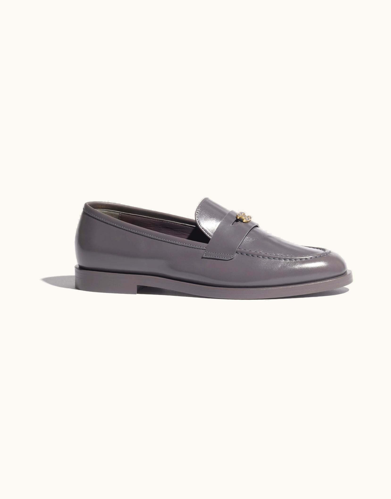 Chanel Moccasins - Shiny Calfskin, Dark Gray | GLINT