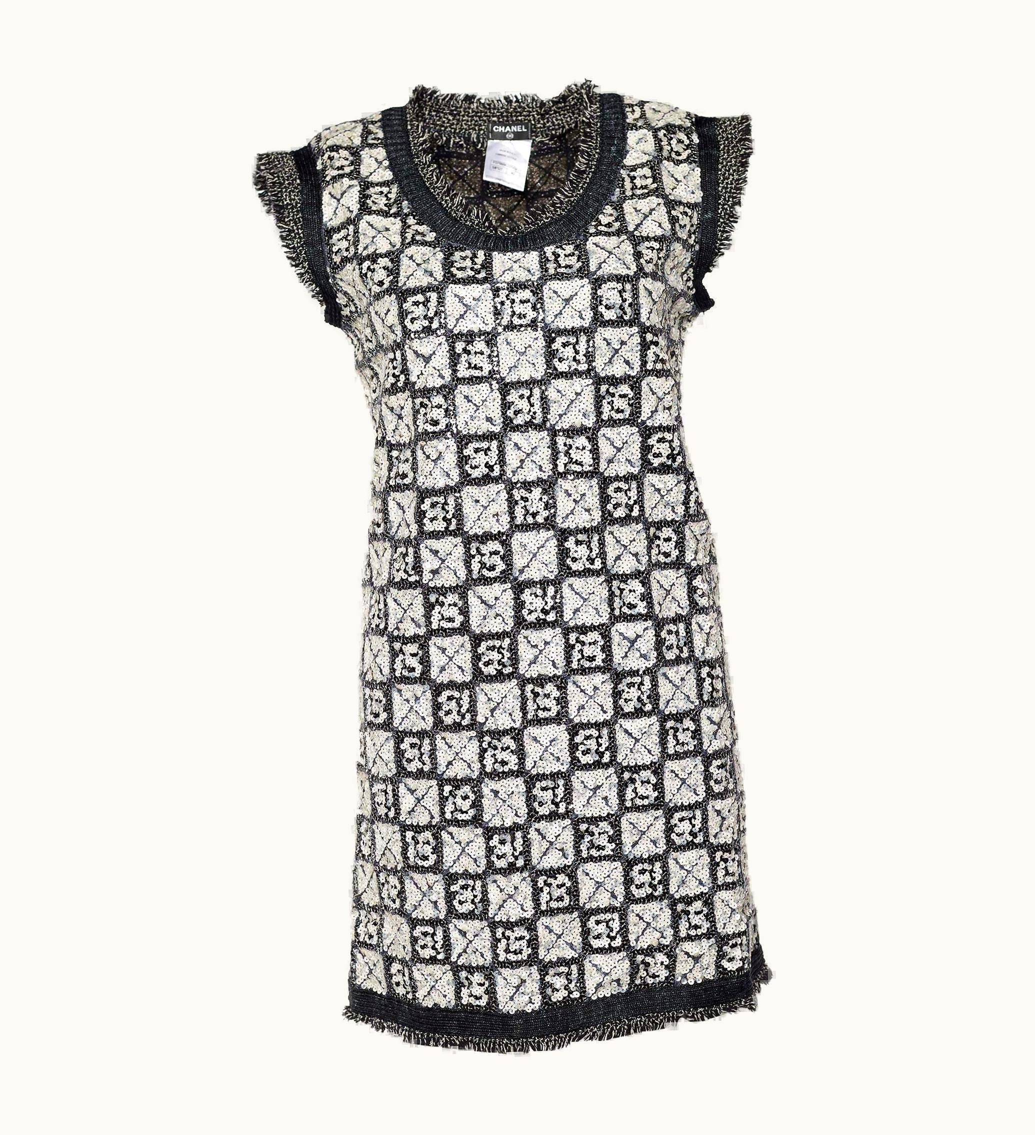 Chanel Monochrome Checkered Sequin Mini Dress | GLINT