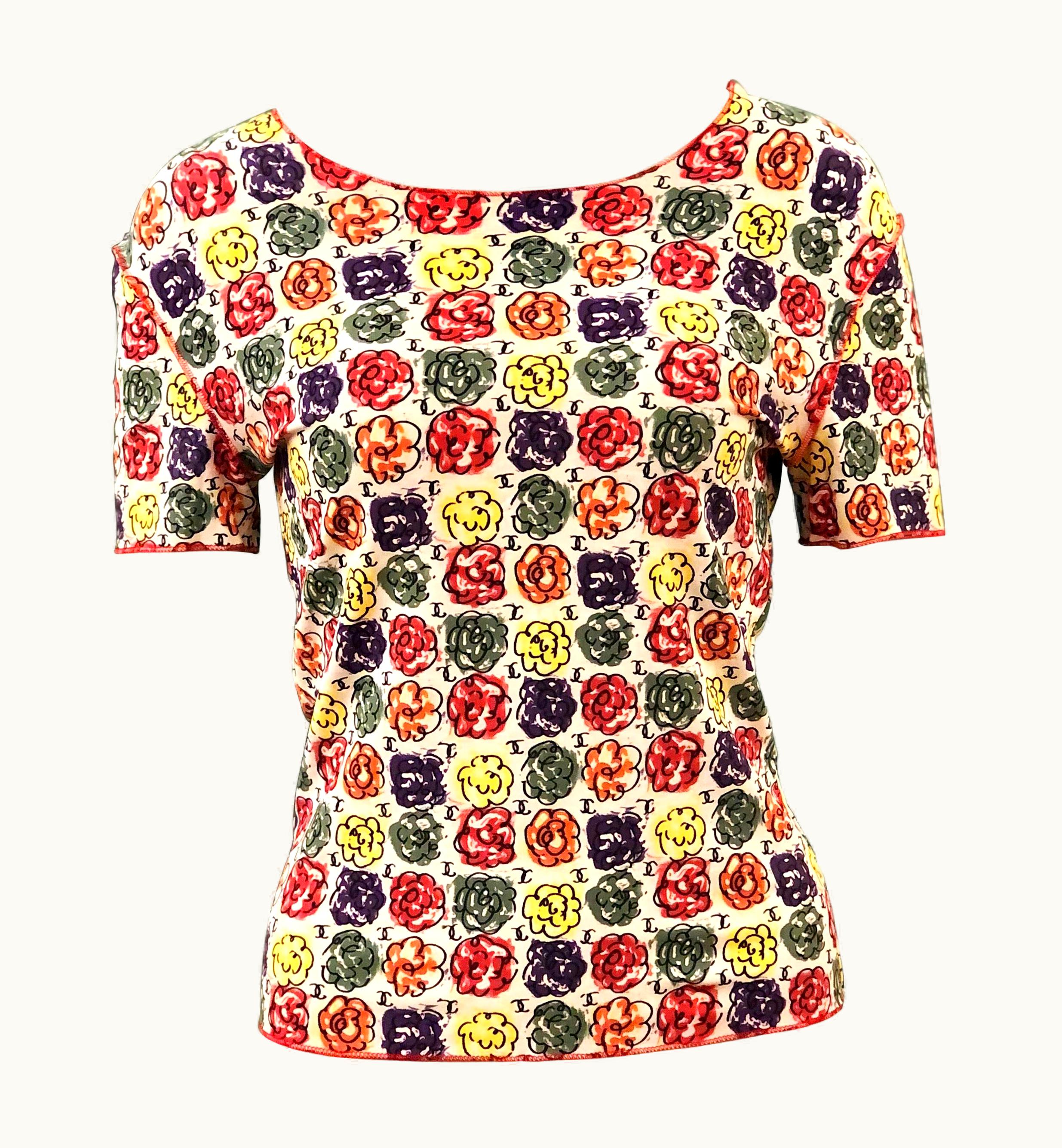 Chanel Multi-Coloured Floral Print T-Shirt | GLINT