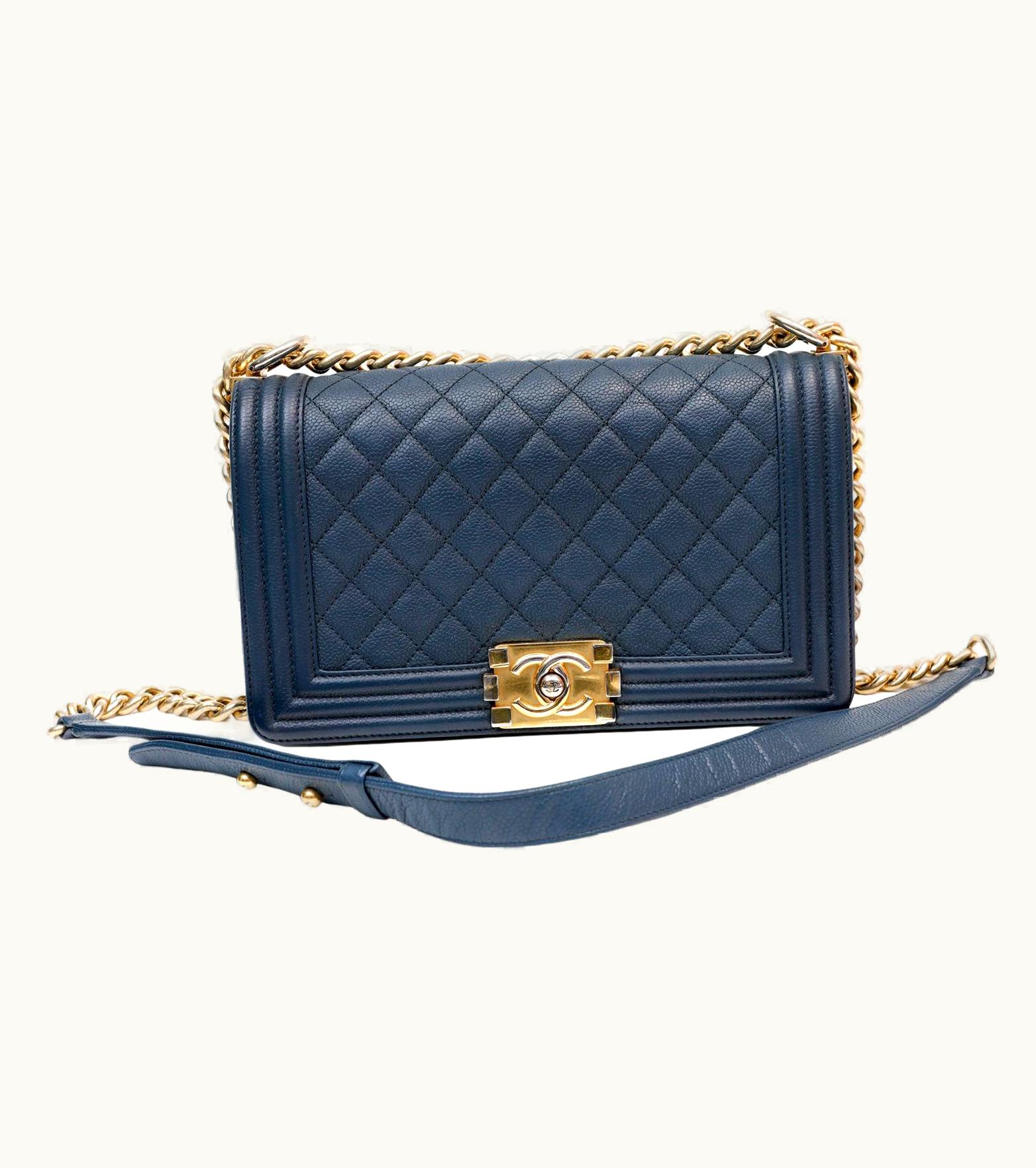 Chanel Navy Blue Caviar Medium Boy Bag | GLINT