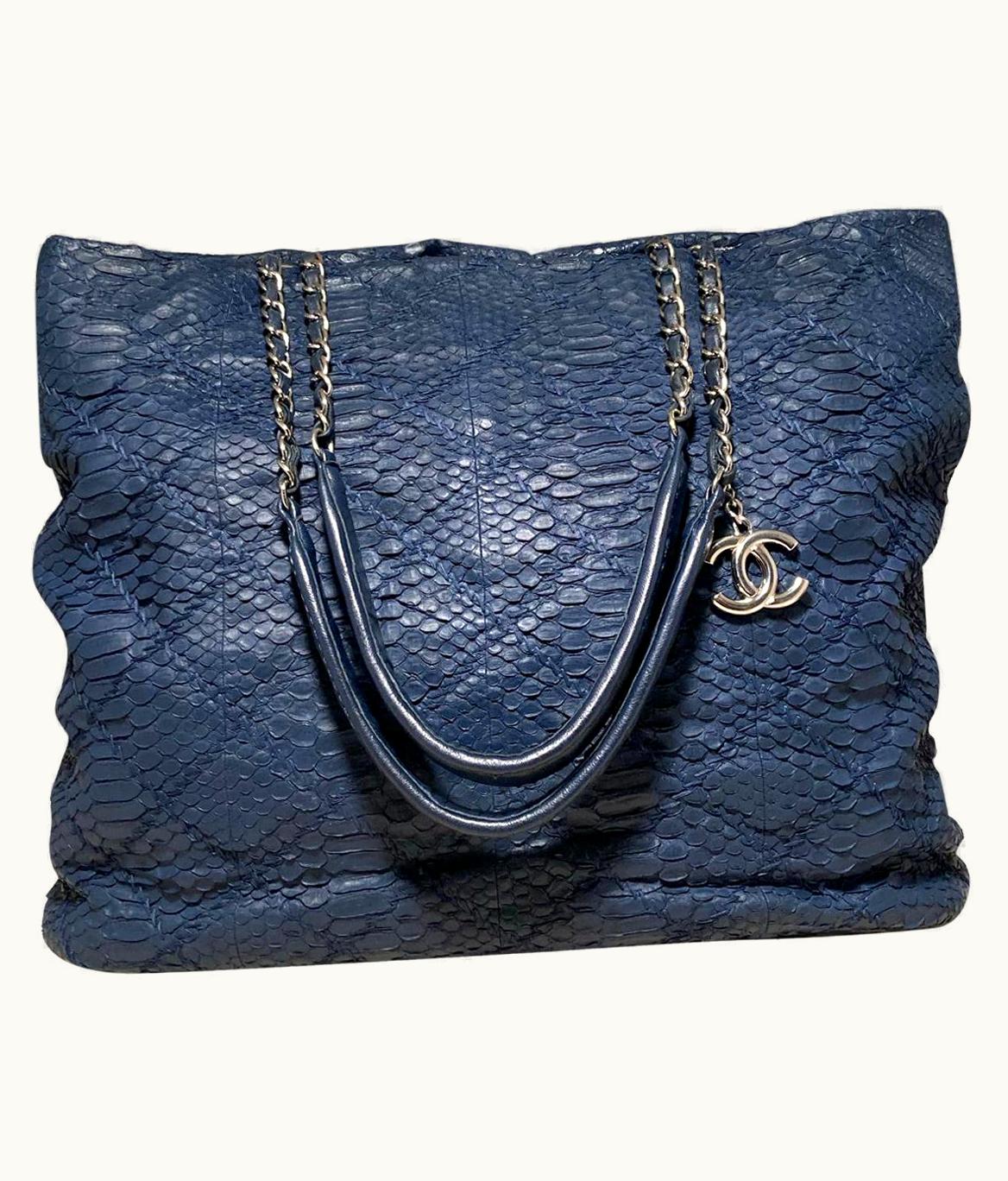 Chanel Navy Blue Quilted Matte Snakeskin Tote | GLINT