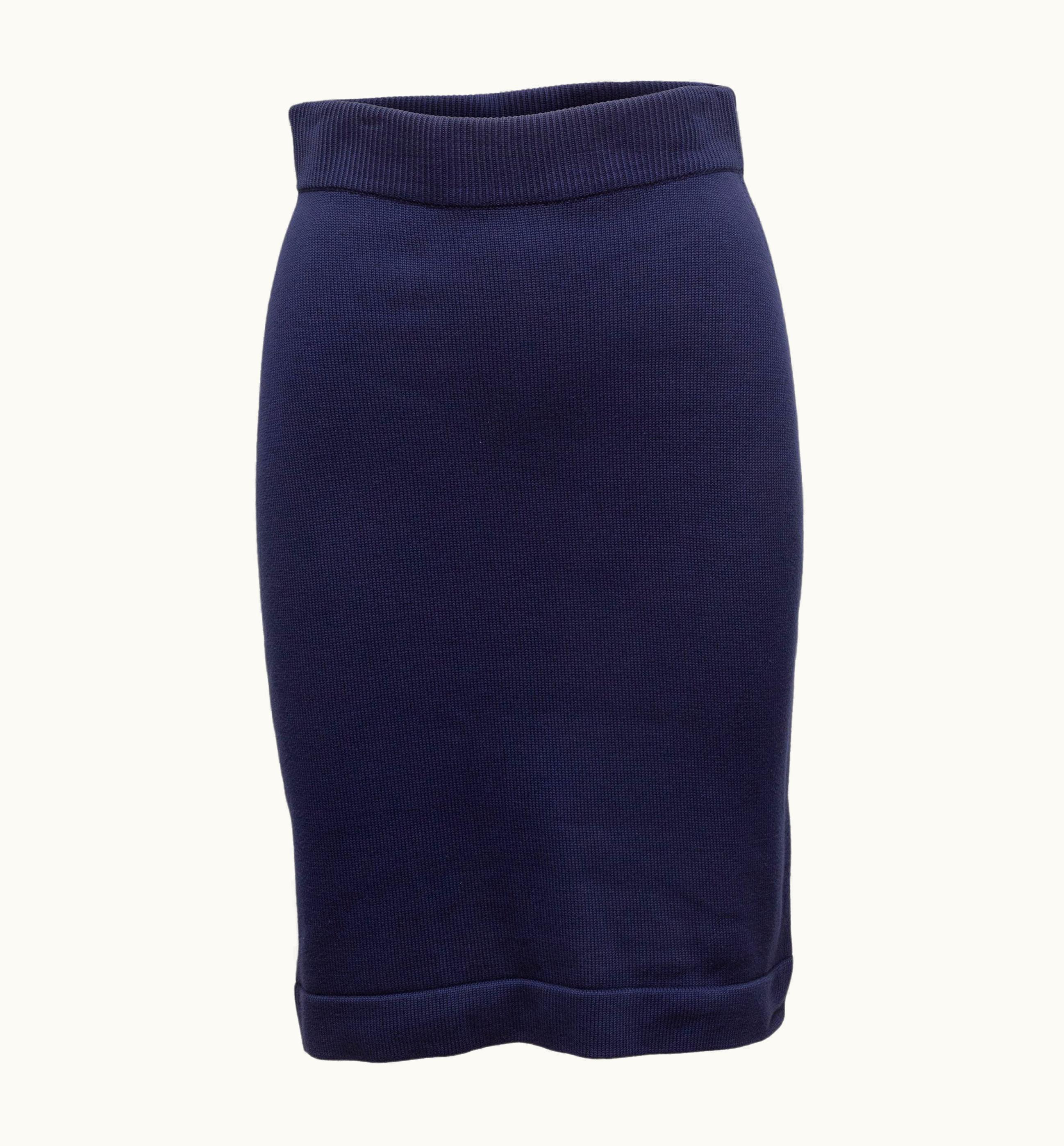 Chanel Navy Knit Pencil Skirt | GLINT