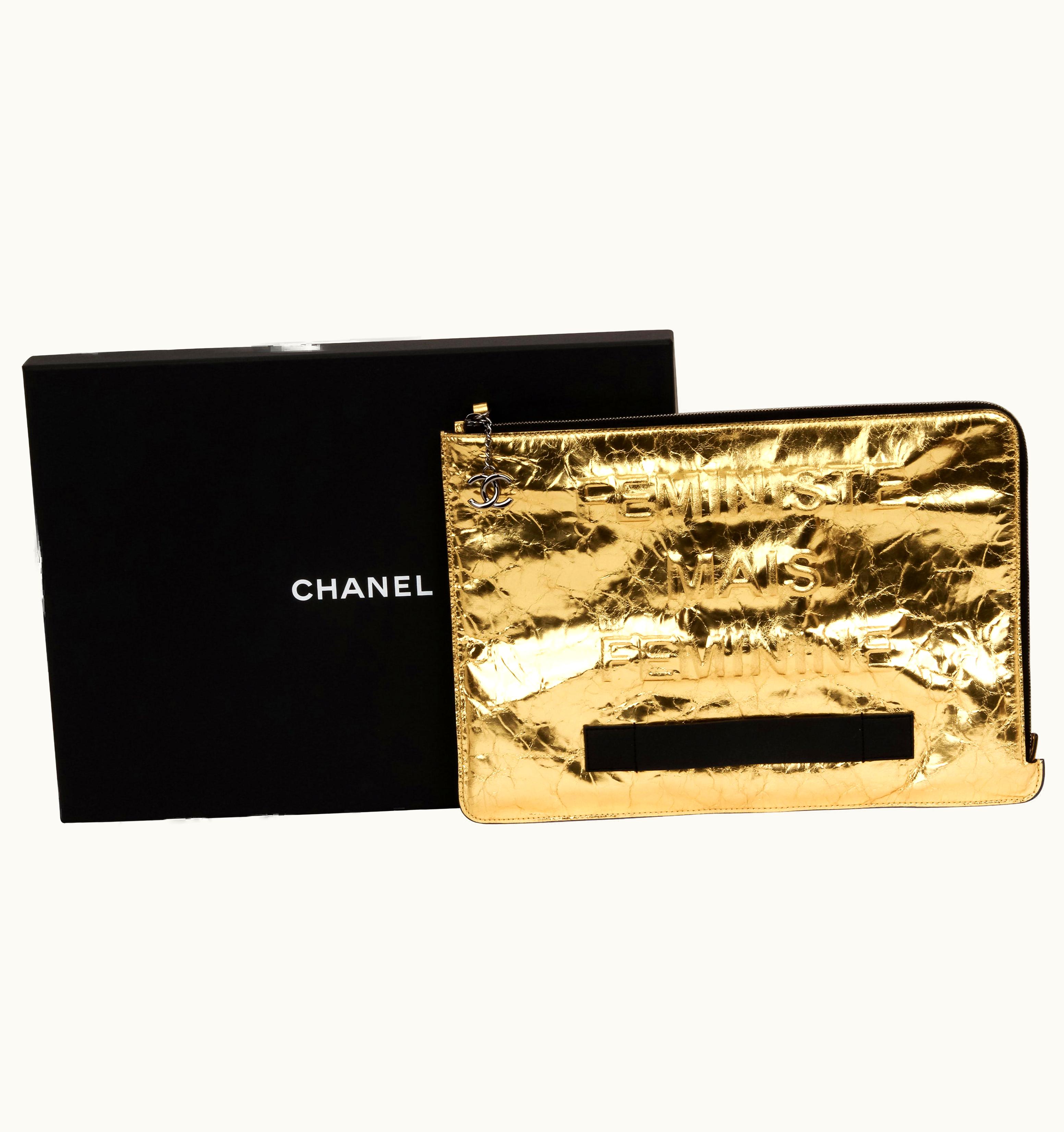 Chanel Oversize Gold Leather Clutch | GLINT