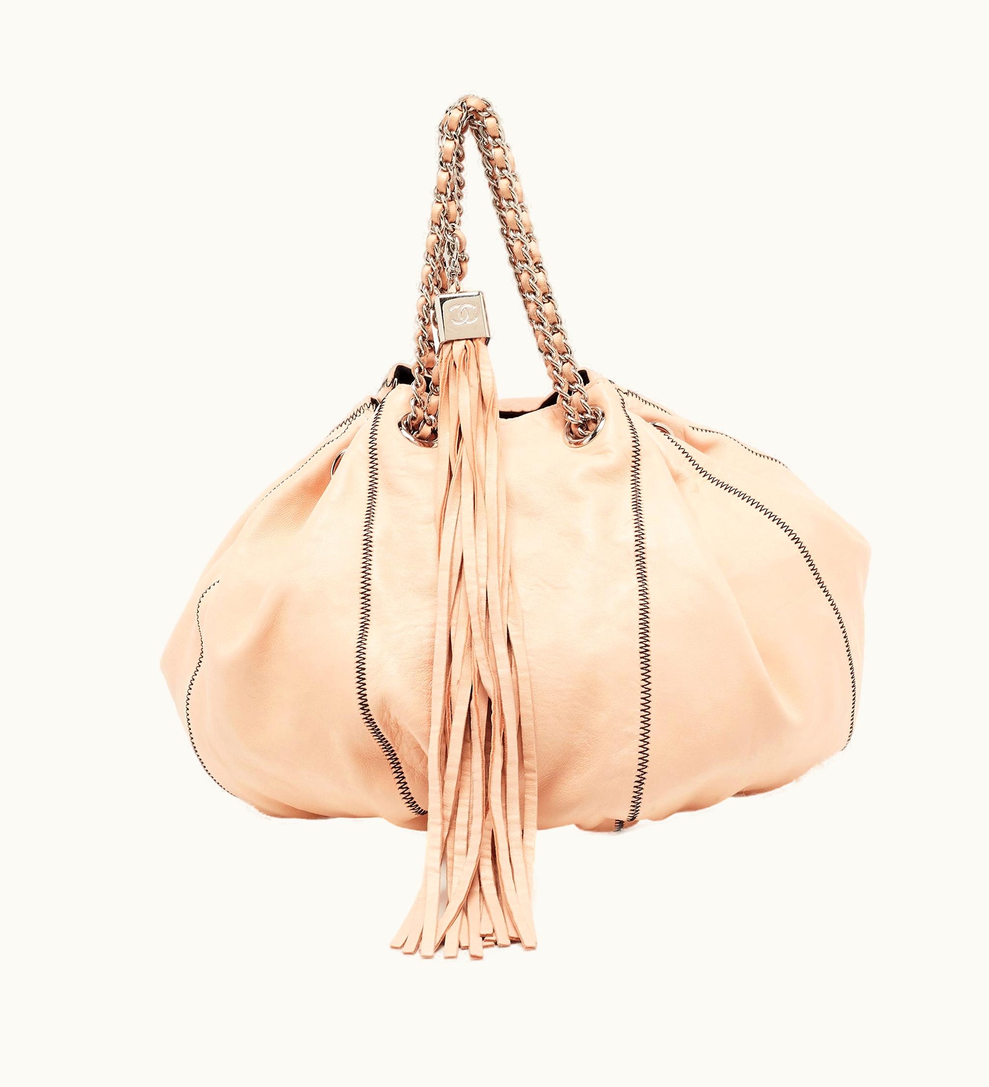 Chanel Peach/Black Leather Reversible Drawstring Tassel Bag | GLINT