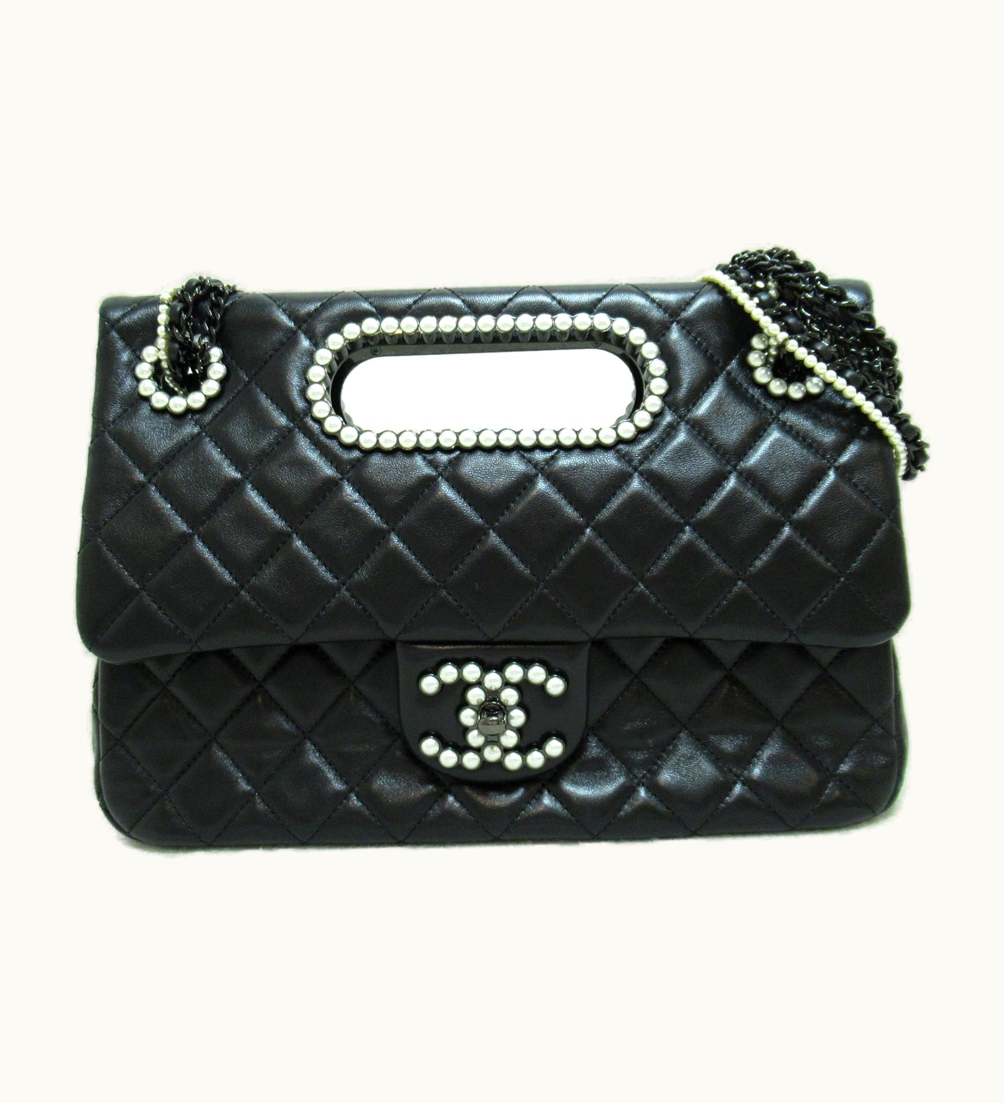 Chanel Pearl Chainshoulder Bag Black Leather | GLINT