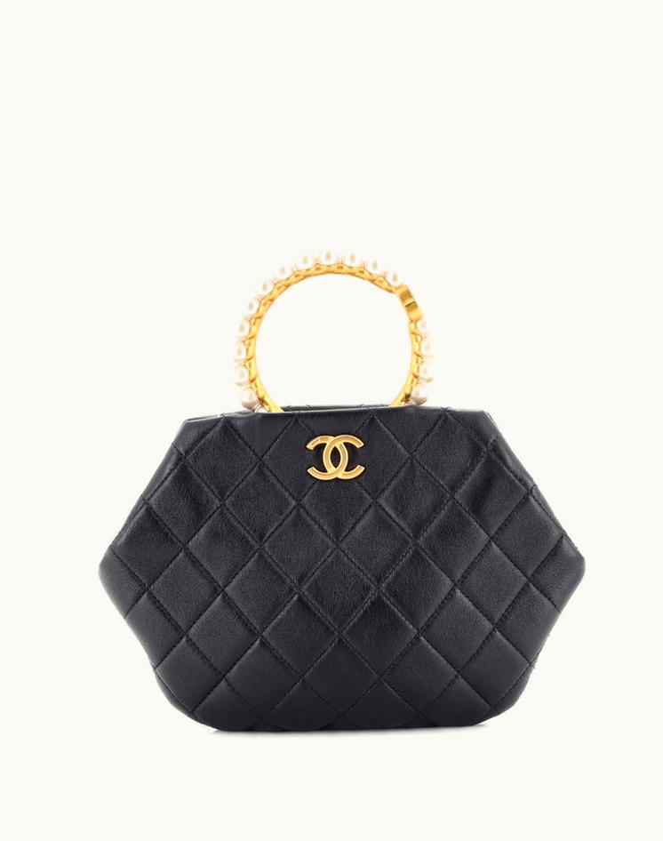 Chanel Pearl Crown Handle Clutch Quilted Lambskin | GLINT