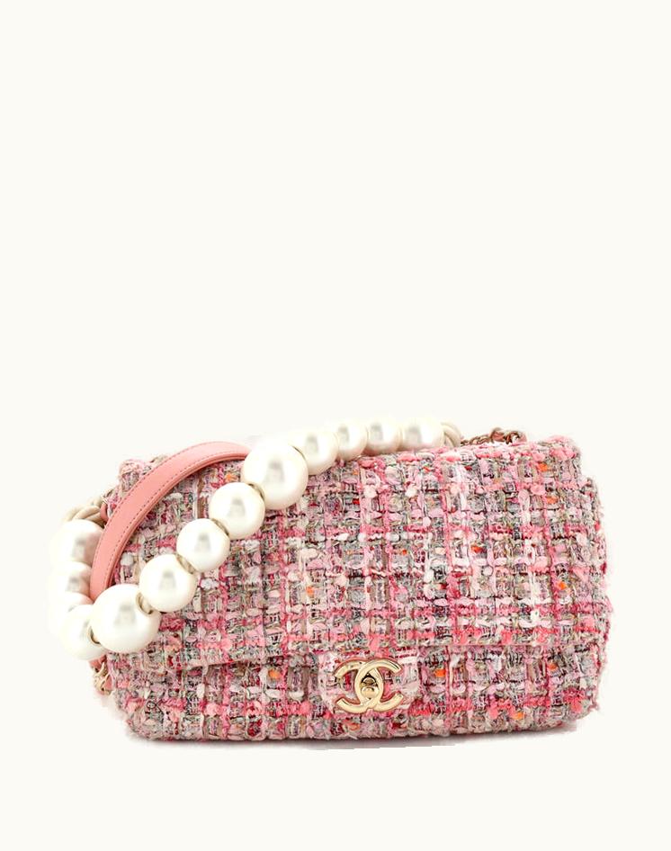 Chanel Pearl Handle Flap Bag Quilted Tweed Medium | GLINT