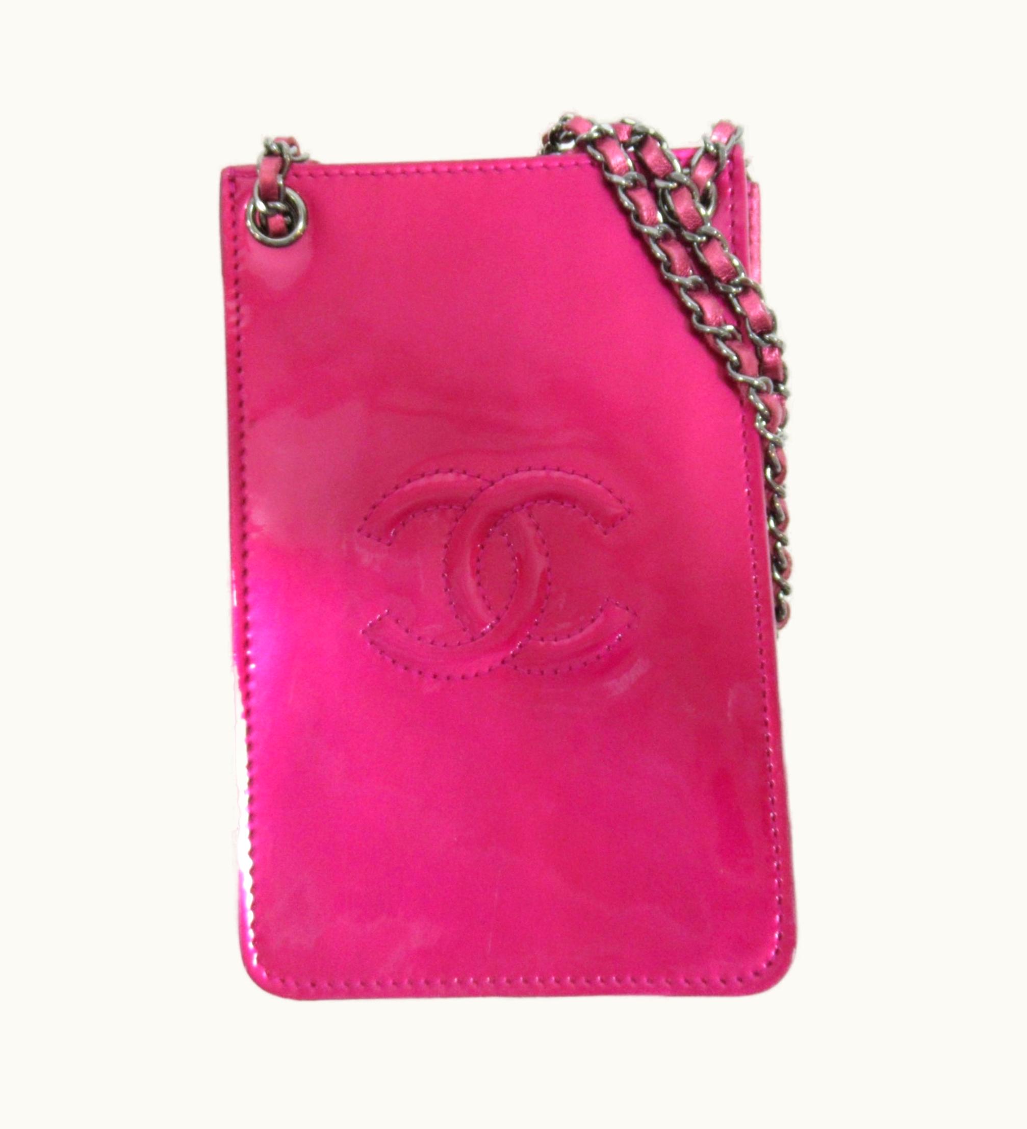 Chanel Phone Folder Pink Leather Patent Leather | GLINT