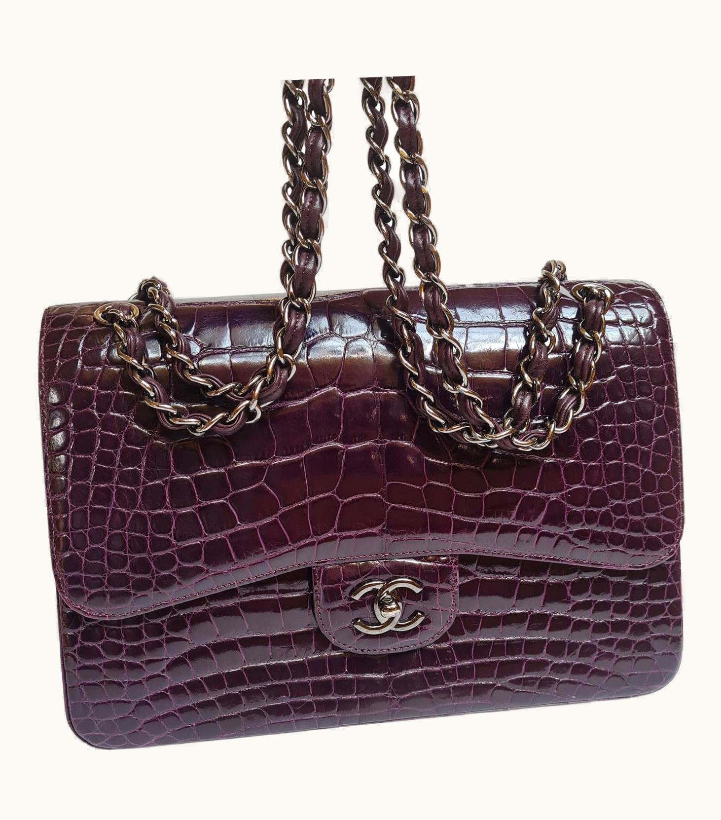 Chanel Purple Alligator Jumbo Flap Bag UZ0614056 | GLINT