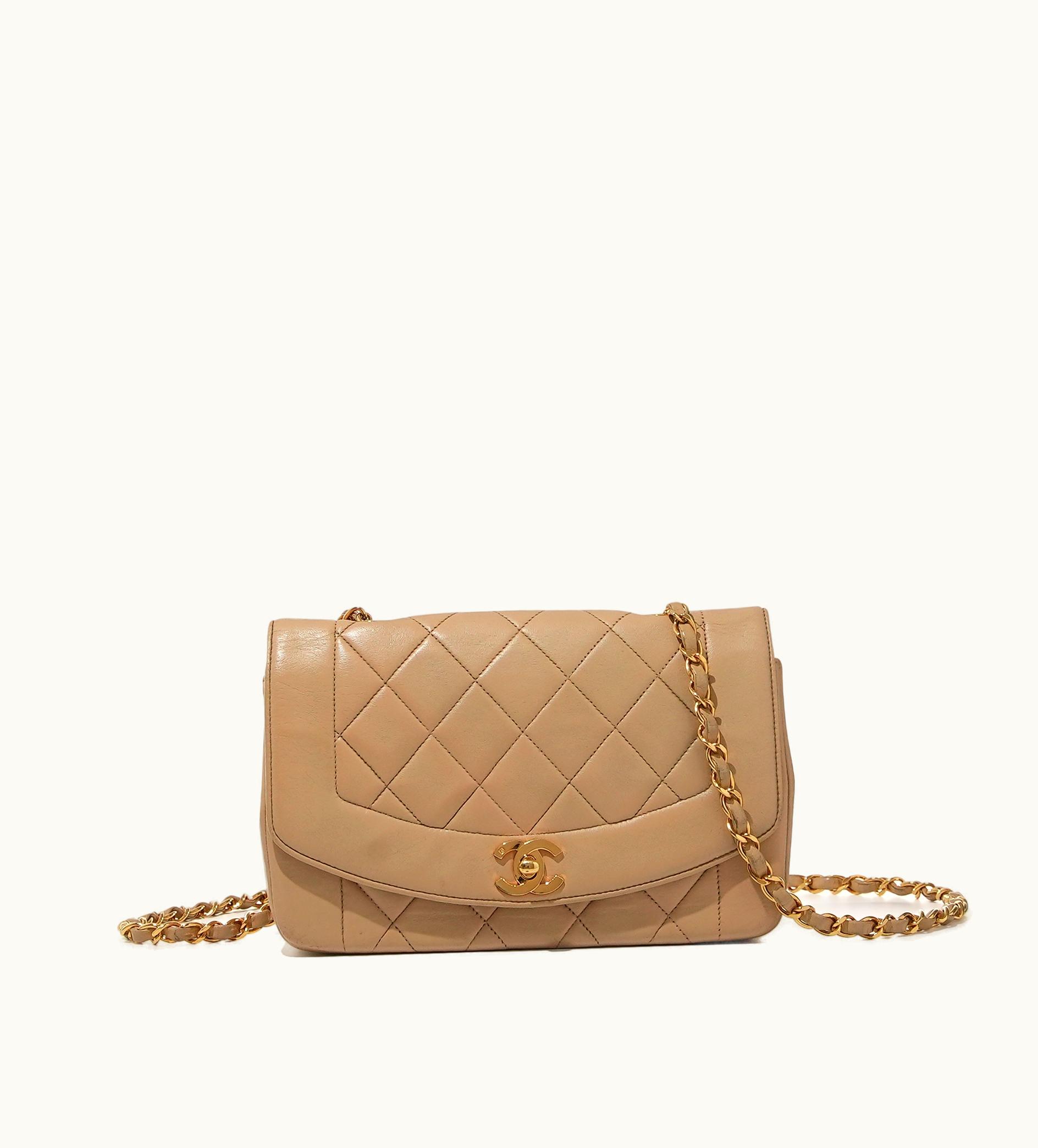 Chanel Quilted Lambskin Flap Bag in Beige with Gold Hardware | GLINT