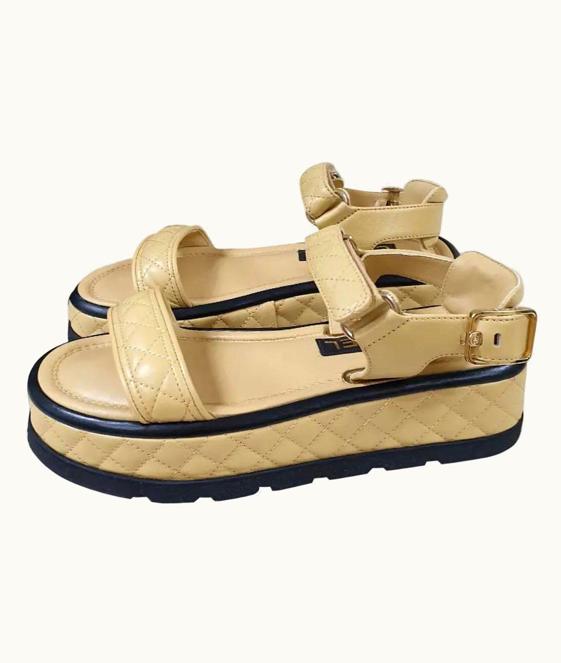 Chanel Quilted Platform Beige Sandals | GLINT