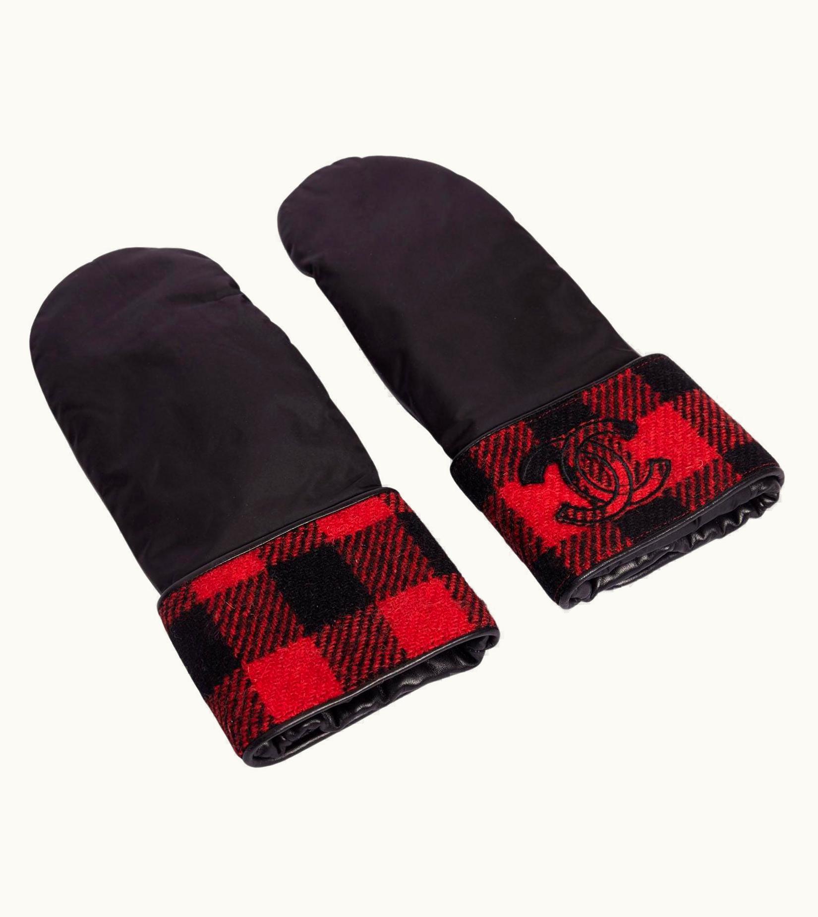Chanel Red Black Checkers Gloves | GLINT