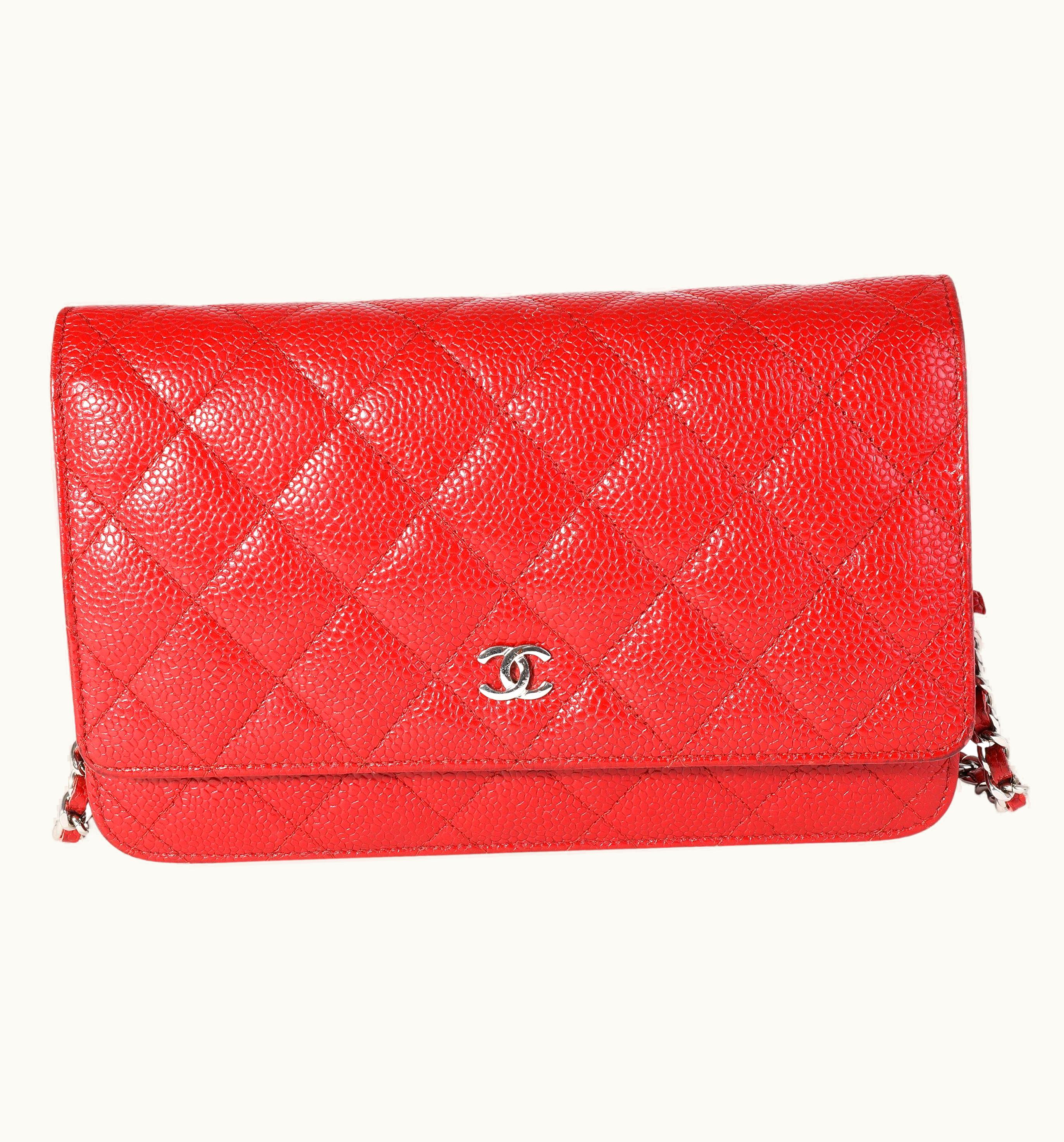 Chanel Red Quilted Caviar Wallet On Chain | GLINT