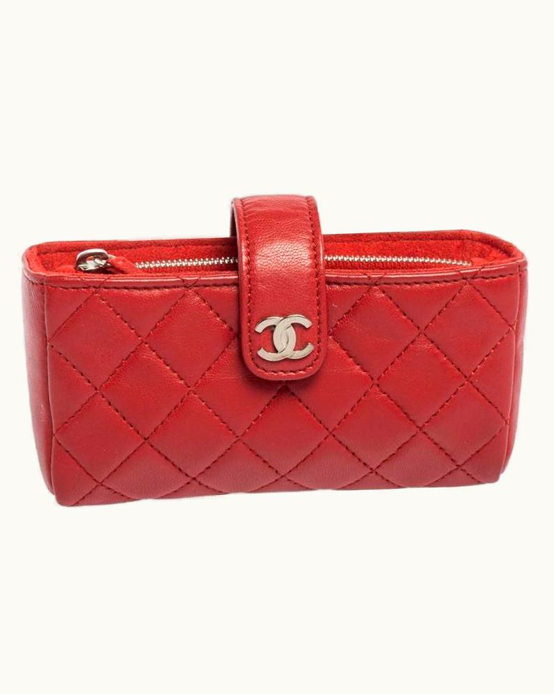 Chanel Red Quilted Leather Cc Phone Pouch | GLINT